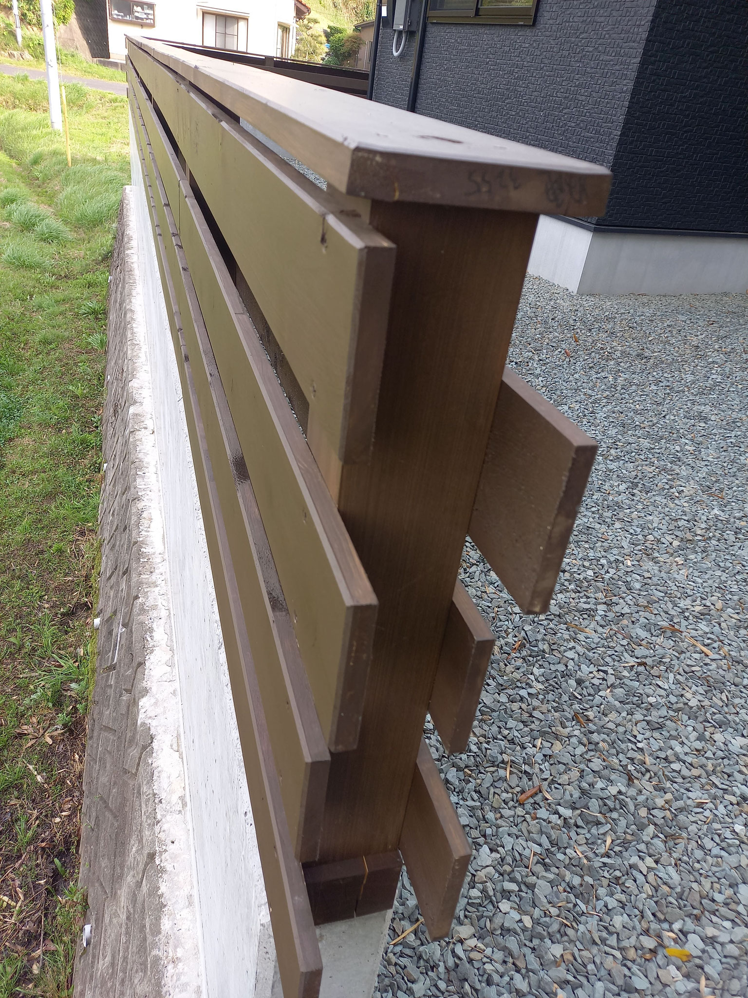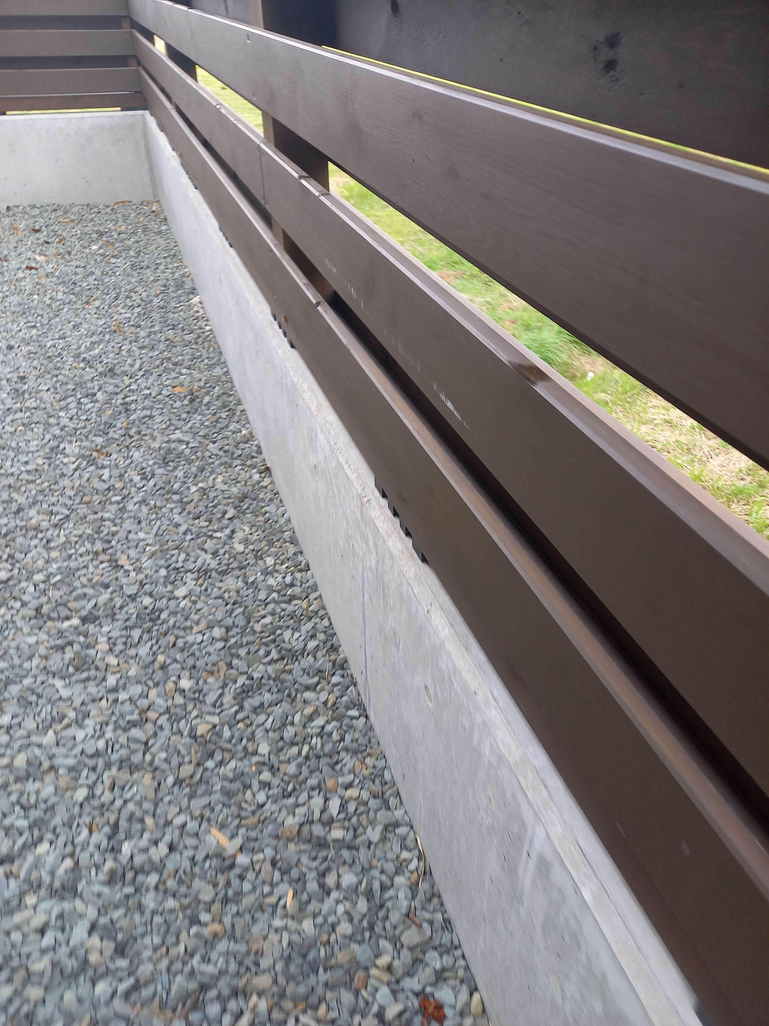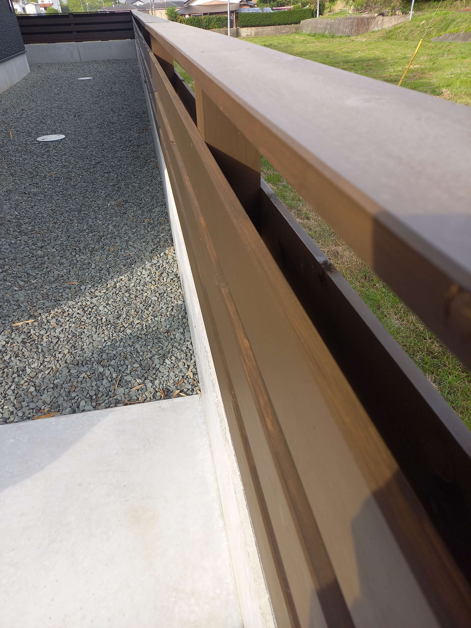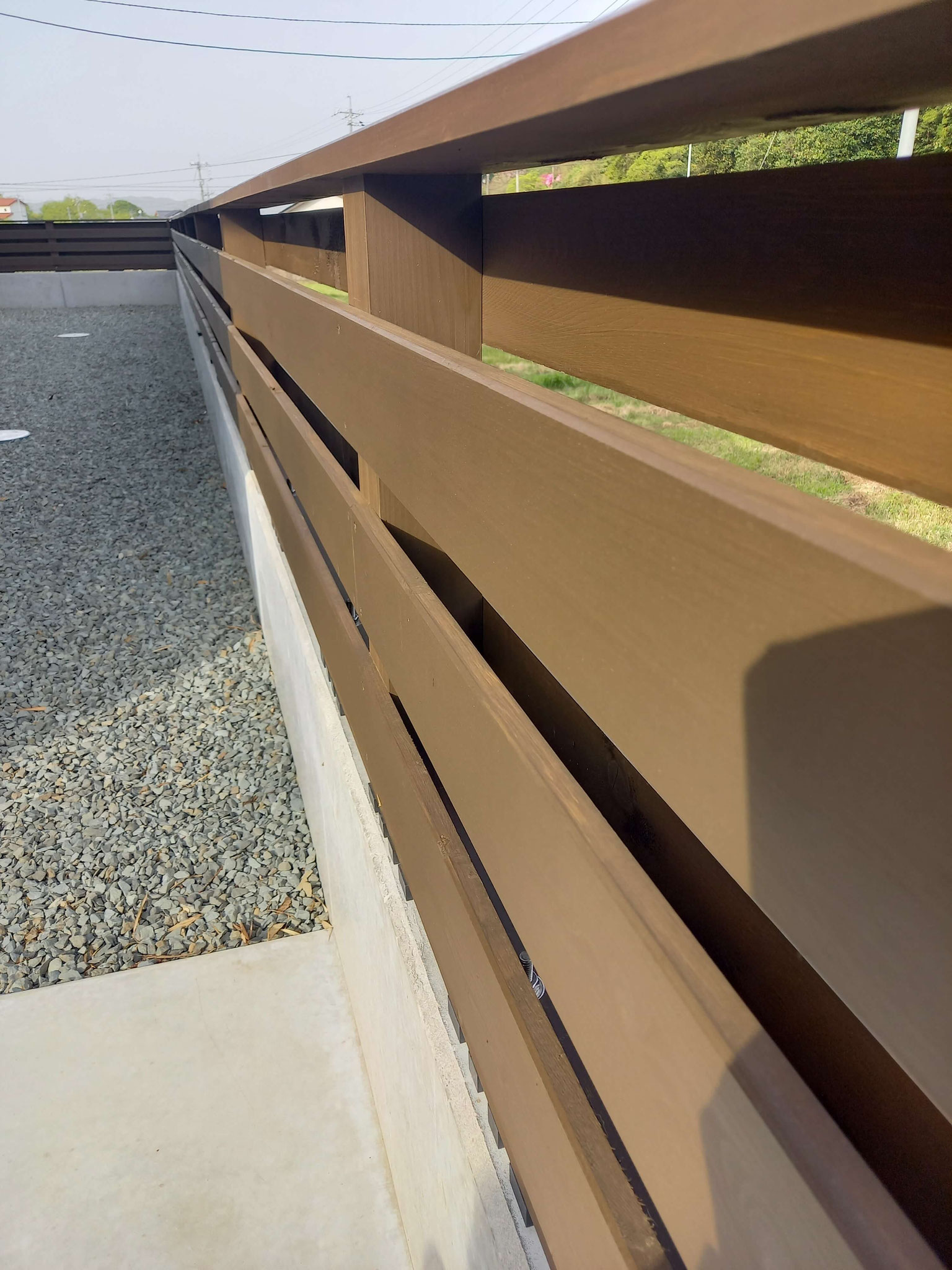さて、今月はベイヒバを、ガードラックA-10ブラウンで塗装した塀の材料です👆