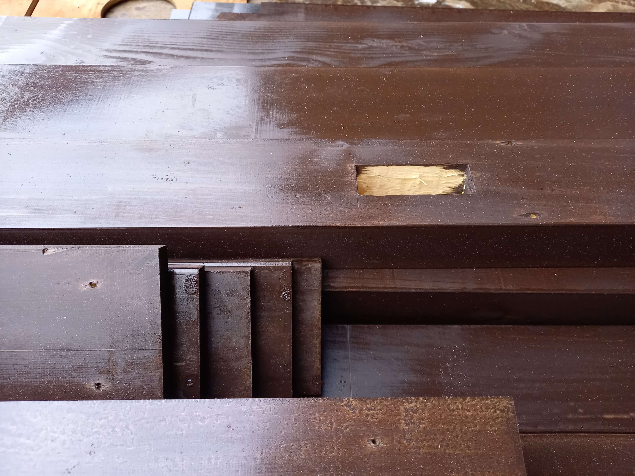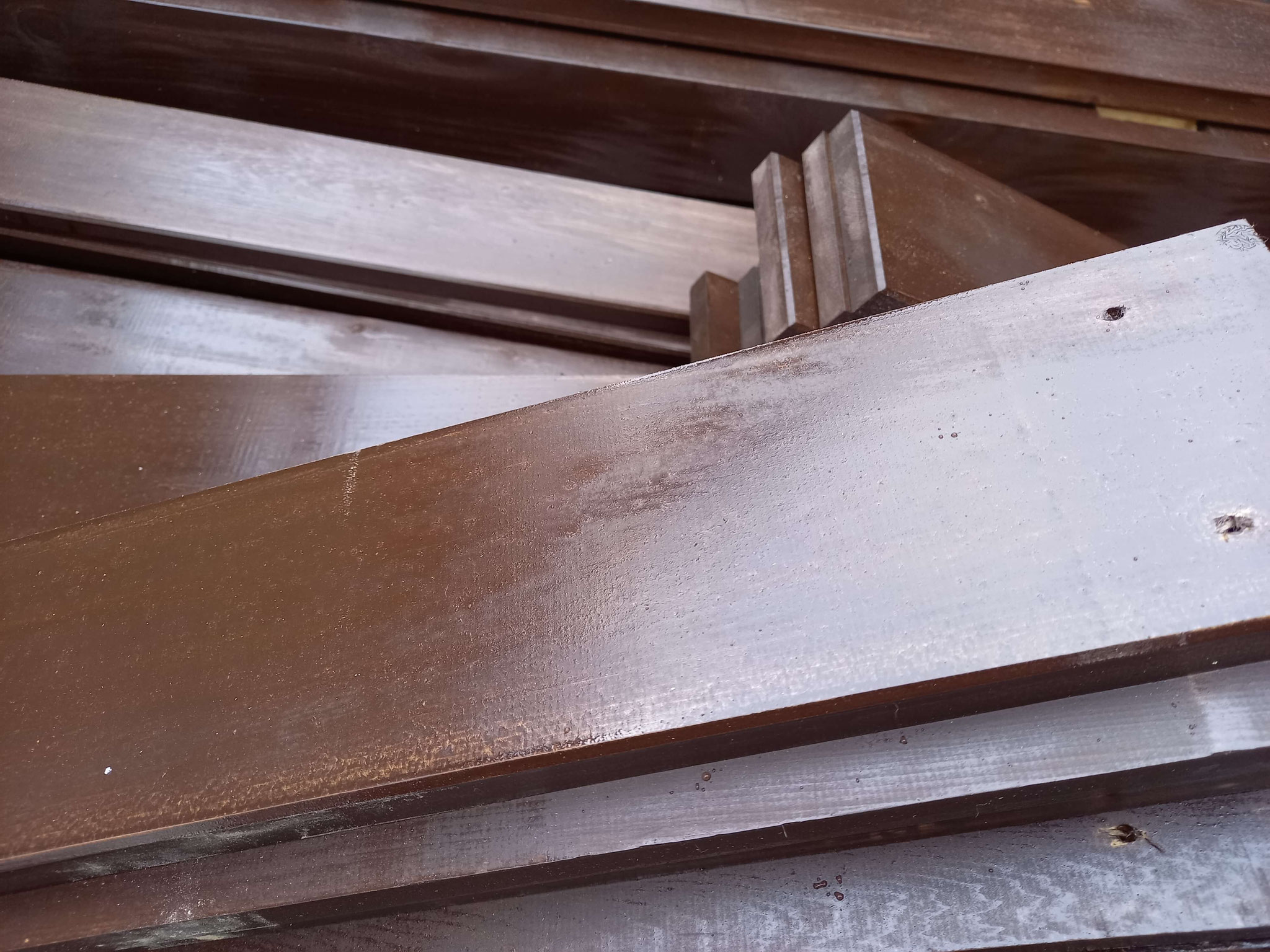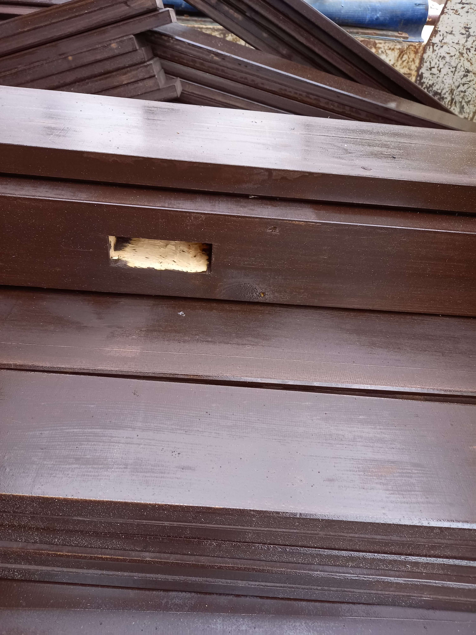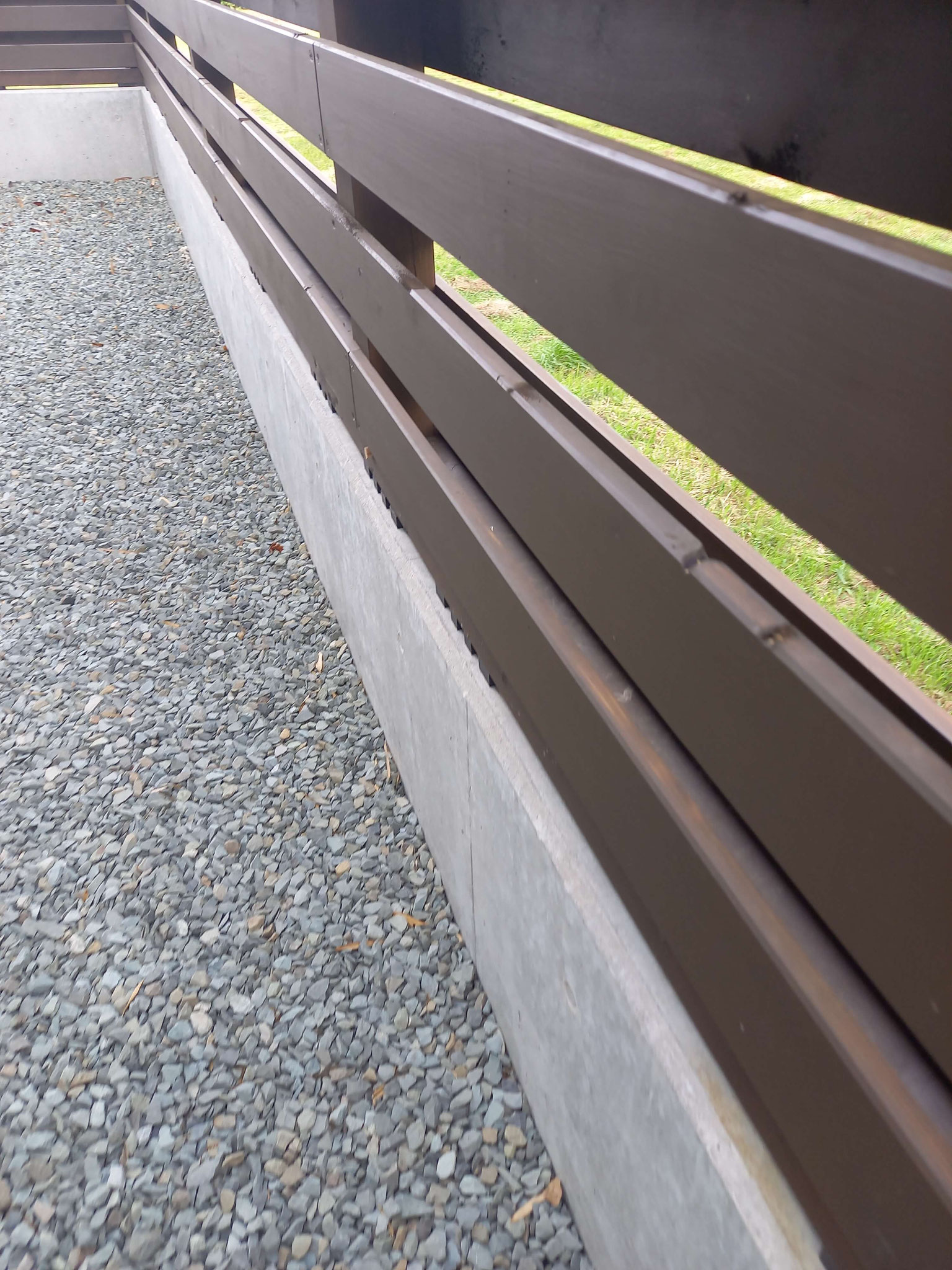 さて、今月はベイヒバを、ガードラックA-10ブラウンで塗装した塀の材料です👆