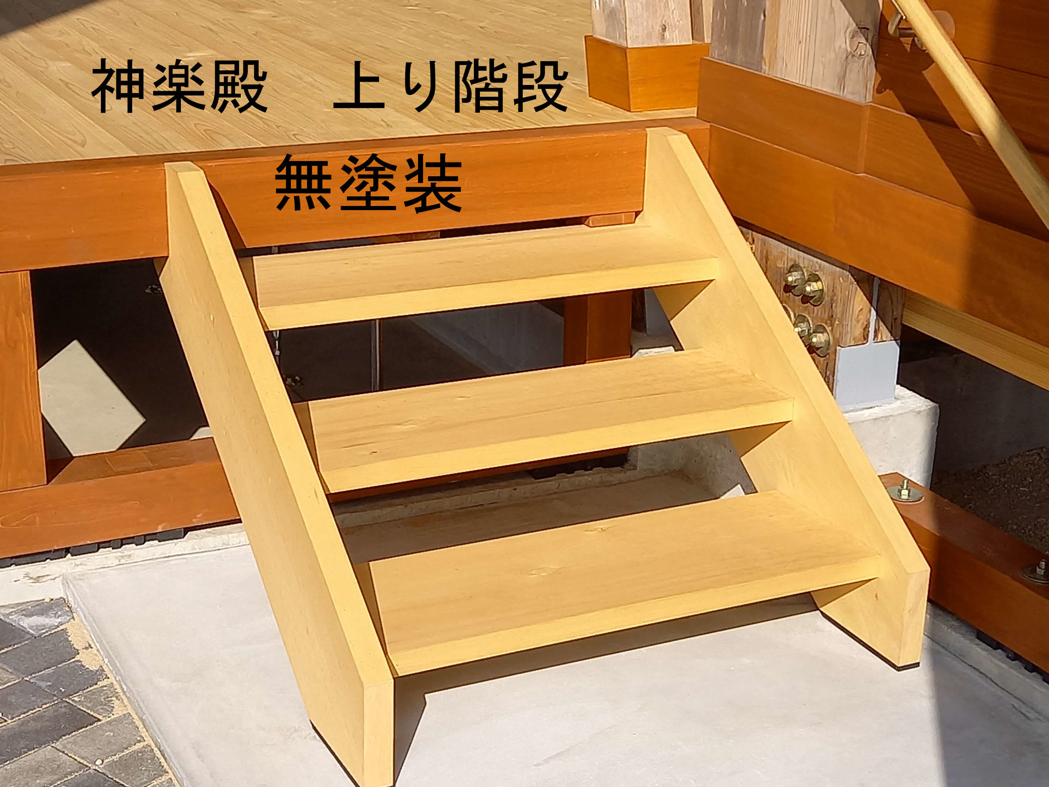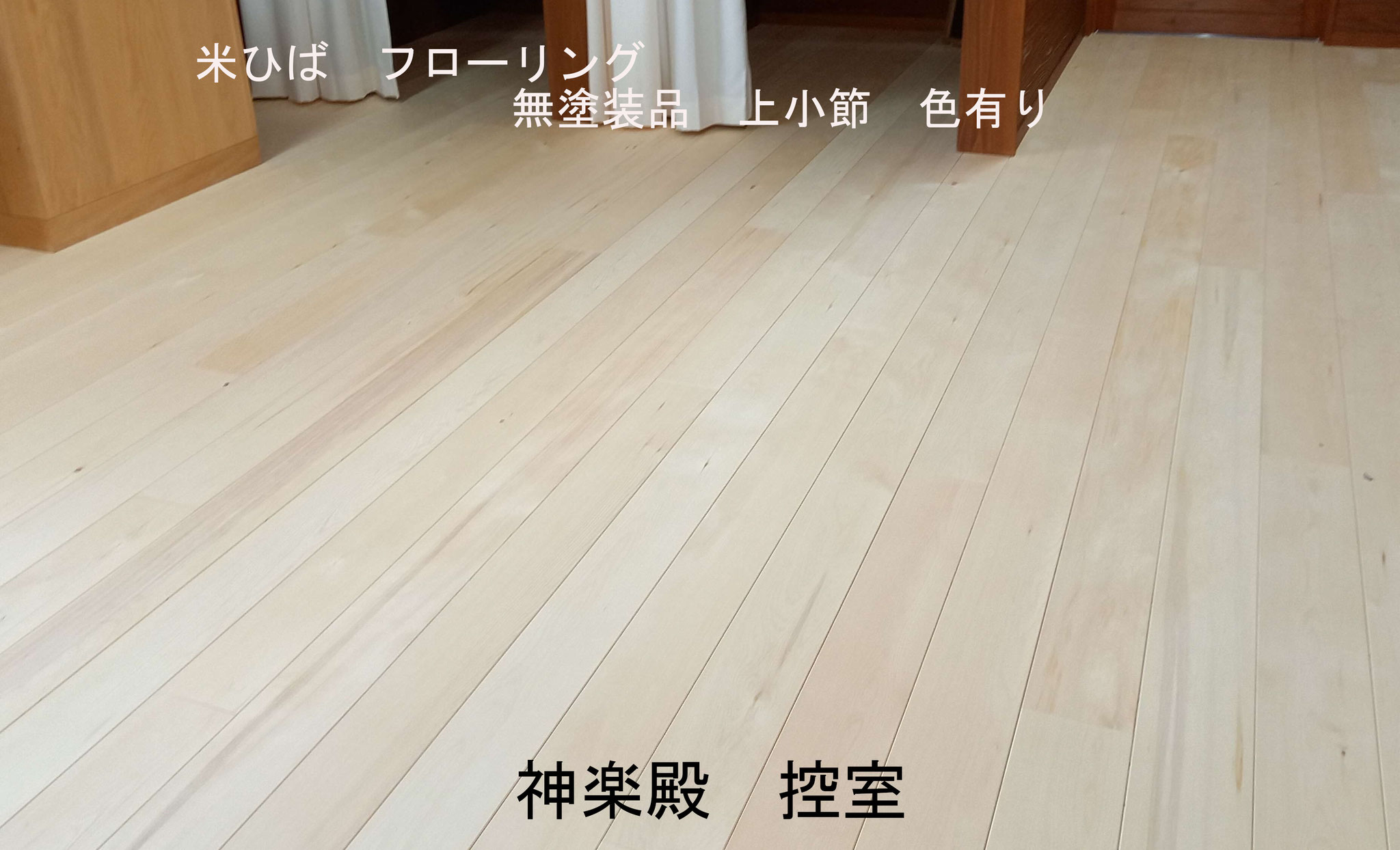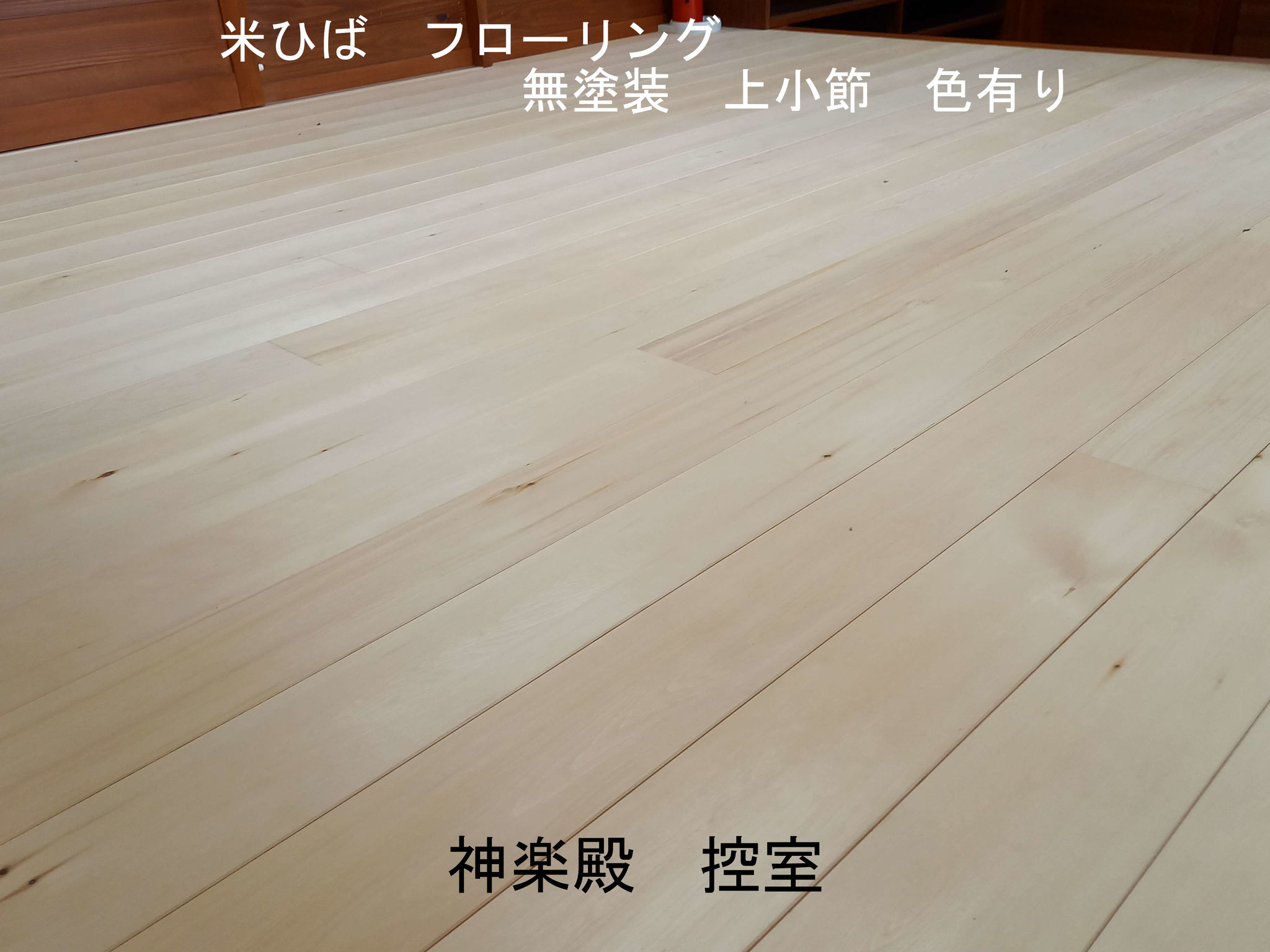 米ひばは、神楽殿の階段材と框材、及び裏にある控室の床板として使用して頂きました。