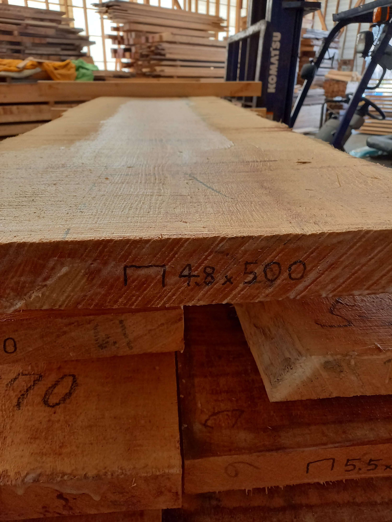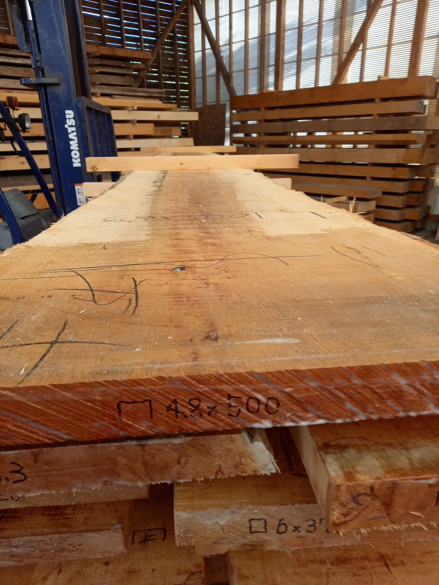 4.6~6.3m×50mm厚の板で、価格は目から火が出そうなくらい上昇していますがこれからの時代は仕方ないですね😩