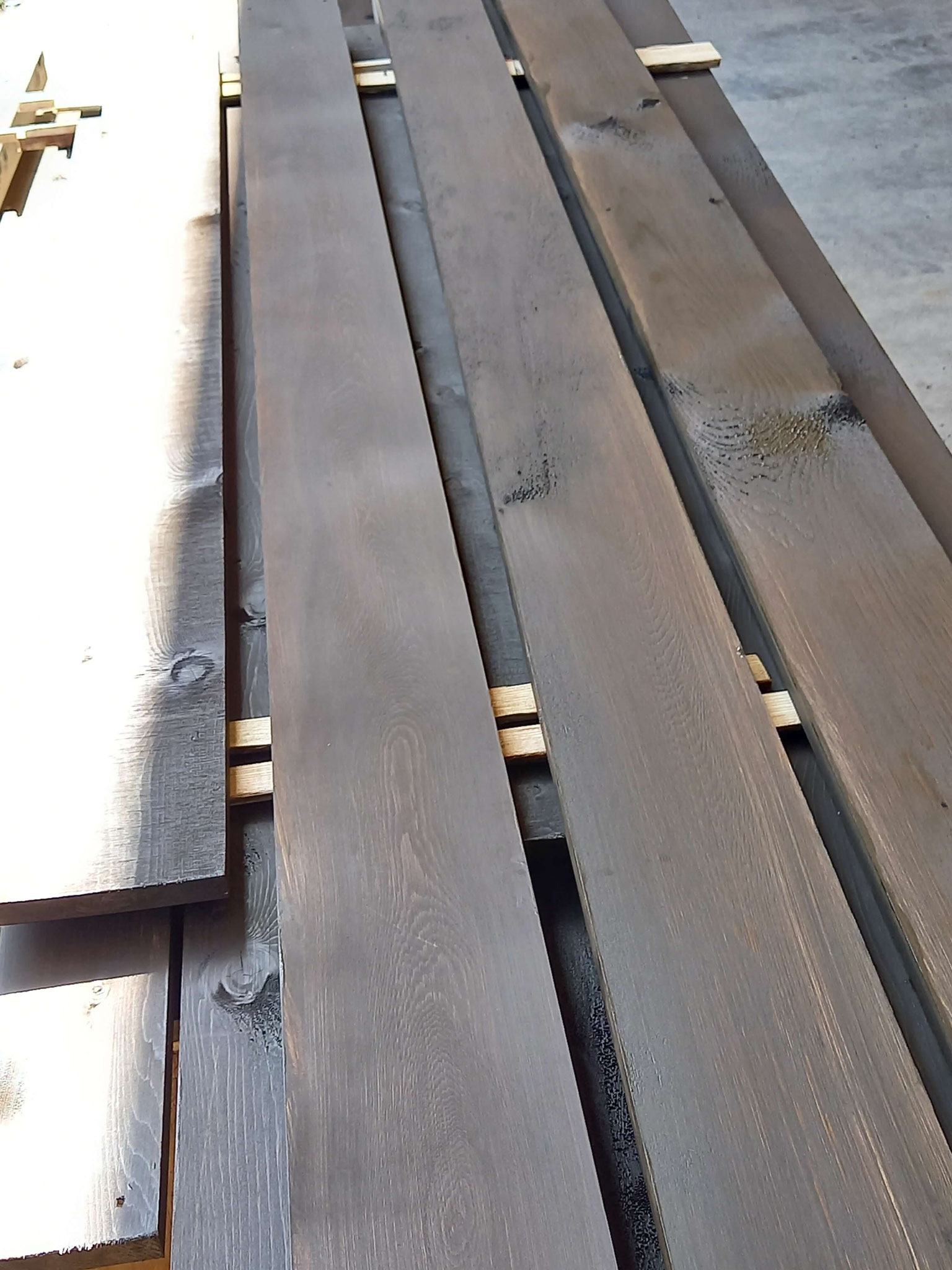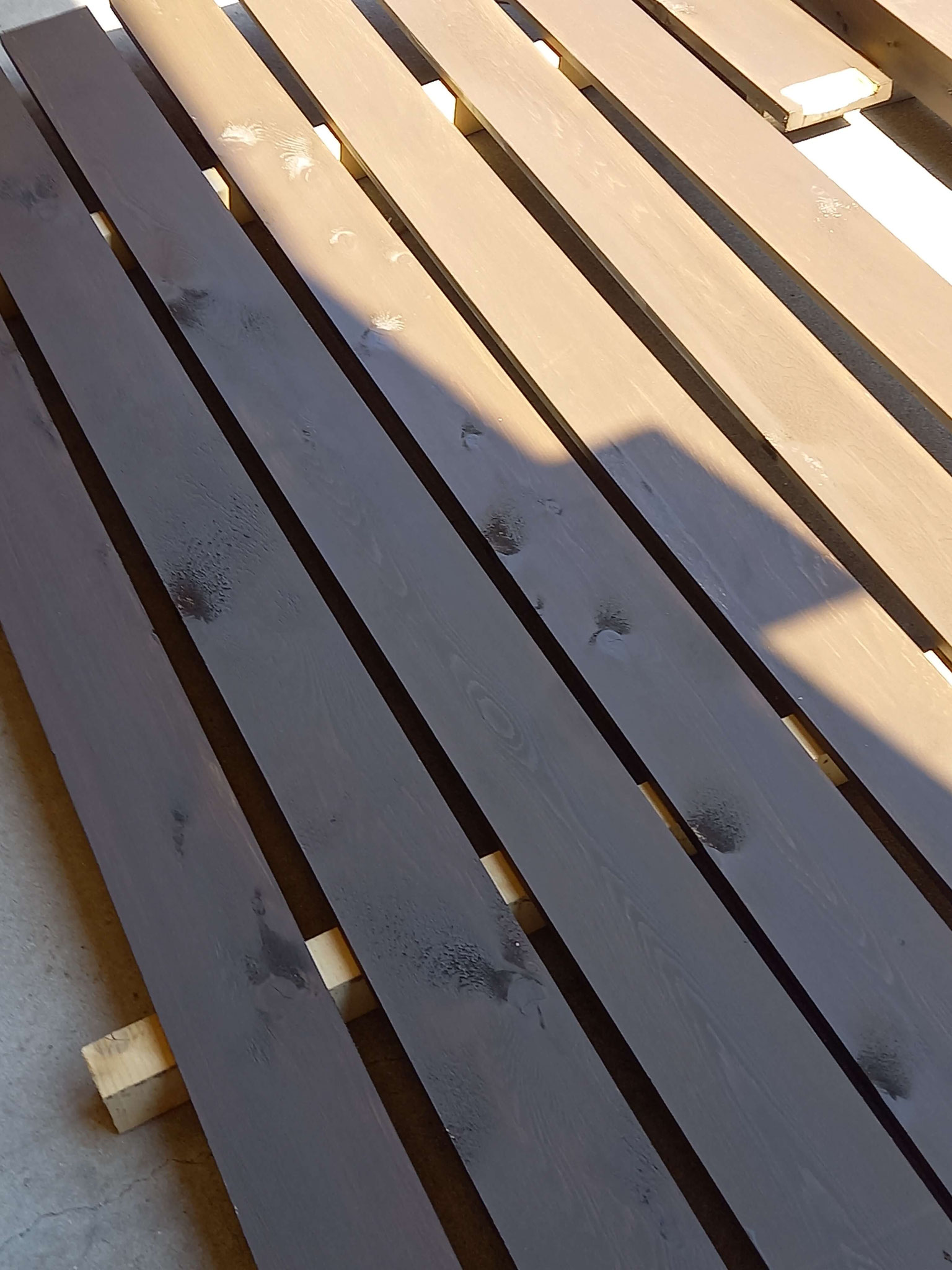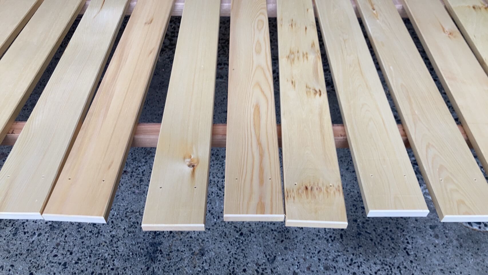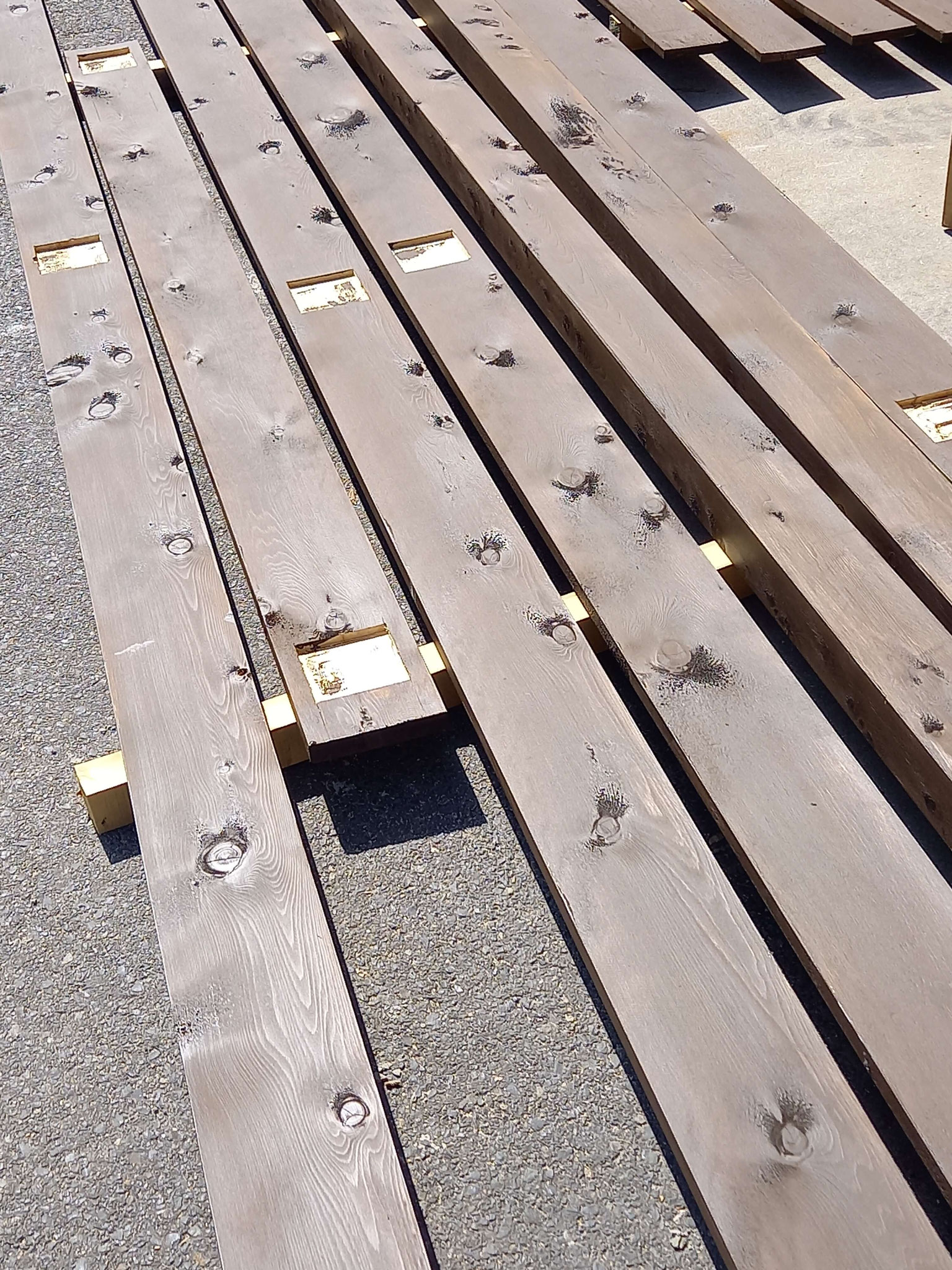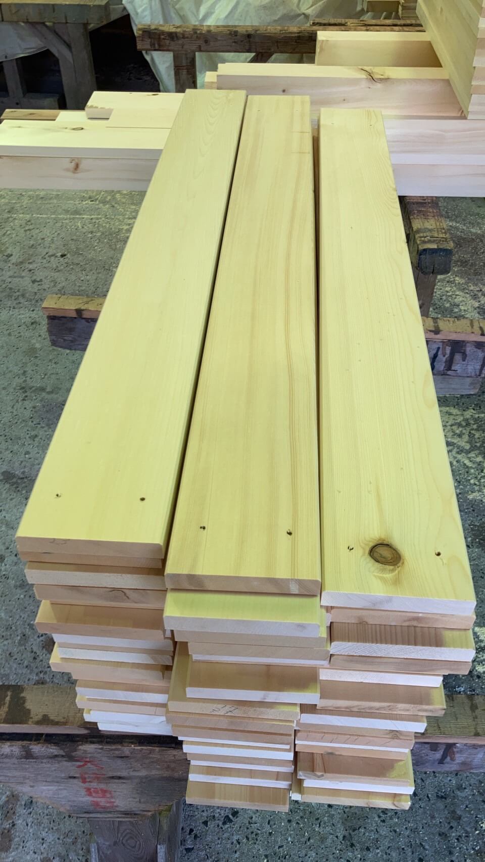 20%以下の製品が弊社にて自然乾燥させたもので、それ以外の材は丸太を製材した、「挽きたて」の材になります😀