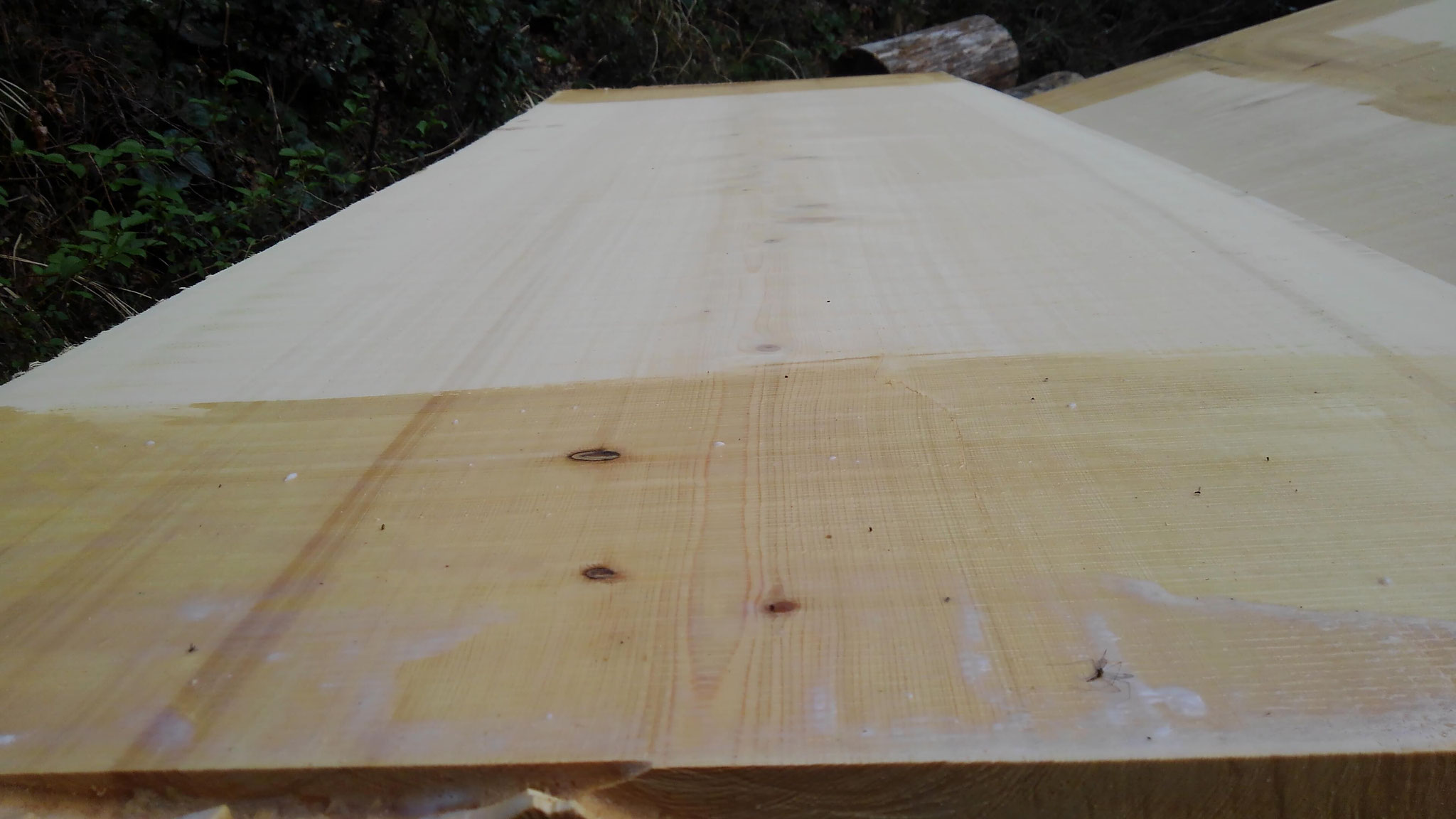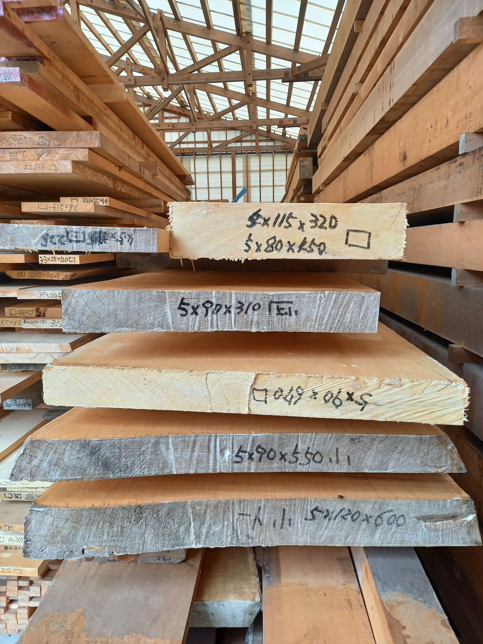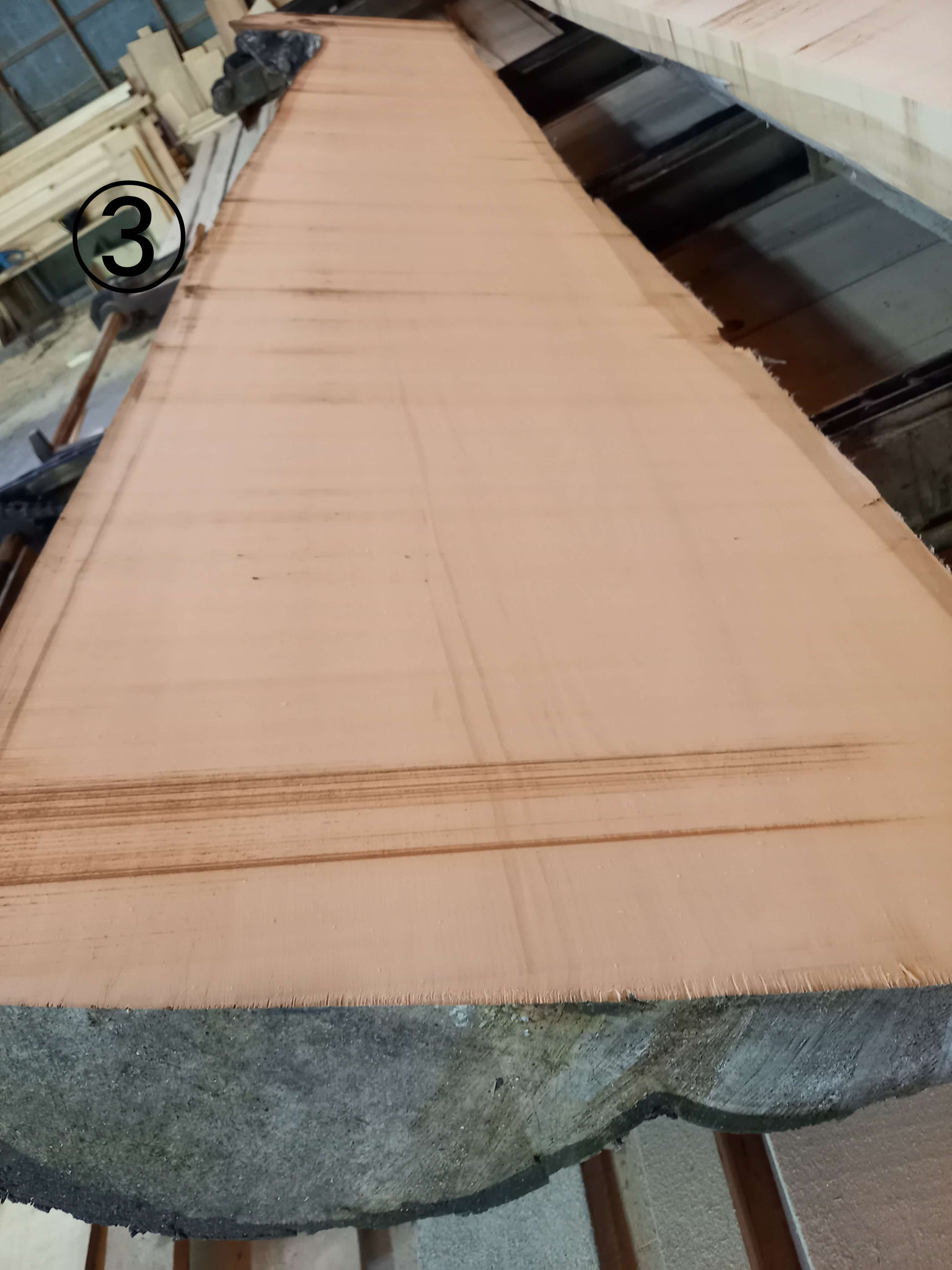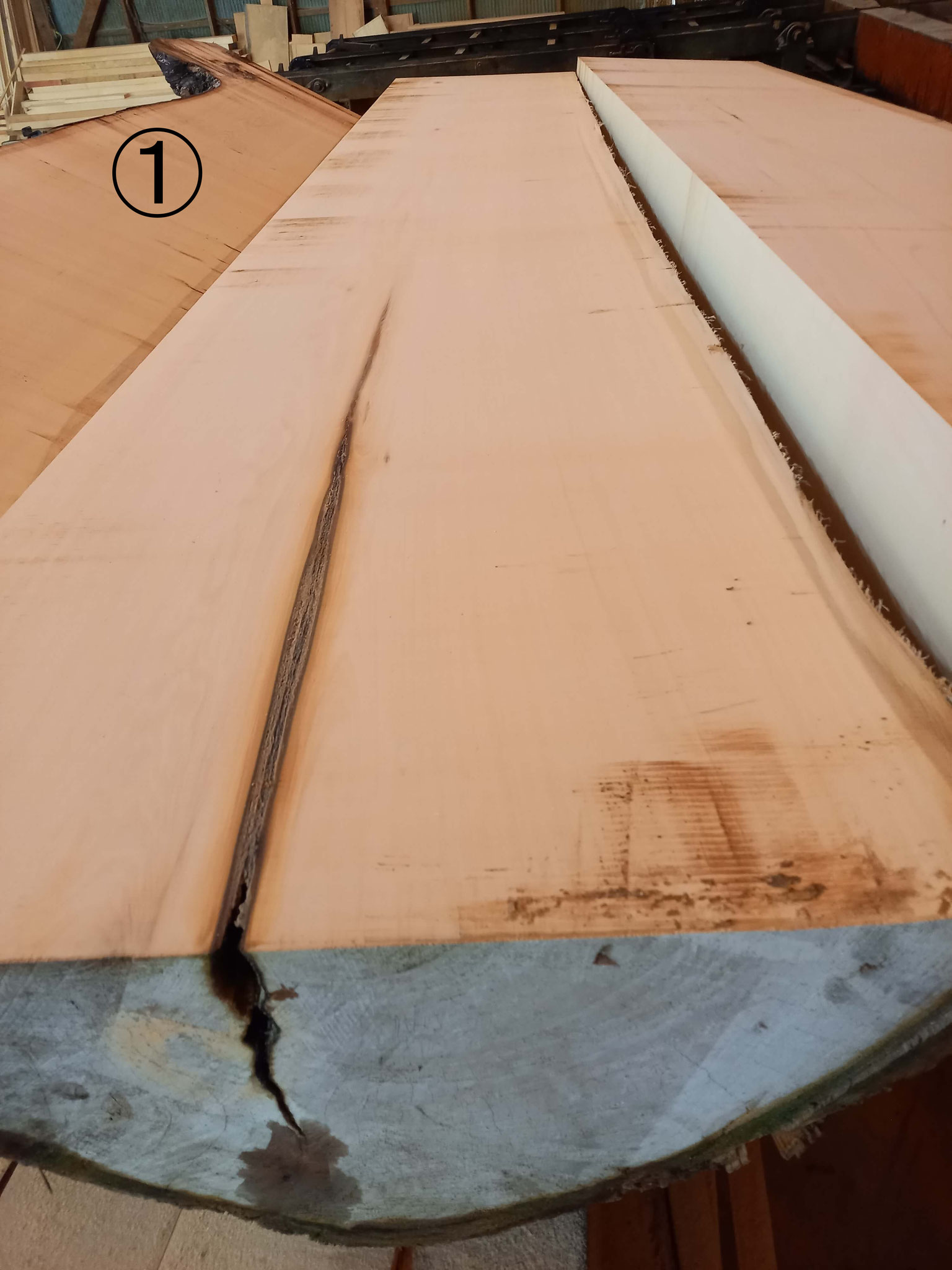 さて、今月の写真ですが、2.3m×160×600ぐらいの盤で、20年以上自然乾燥させているとっておきの盤です😄