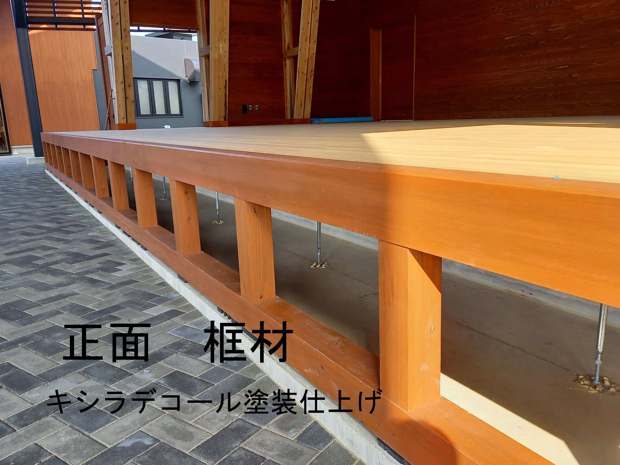 さて、今月はガードラックという濃い茶色の塗料を、大工さんが塗っていたので、写真を撮らせて頂きました😄