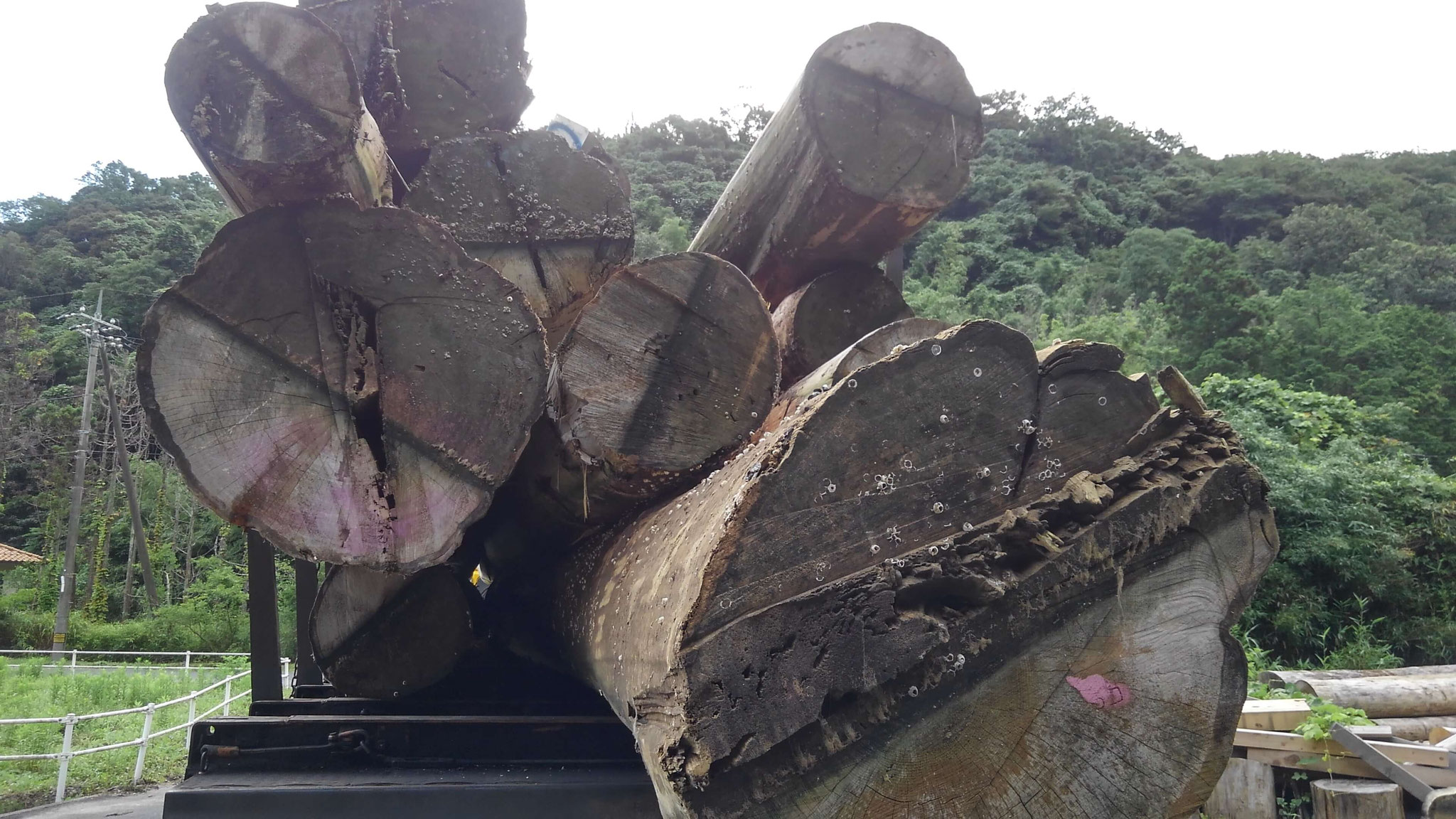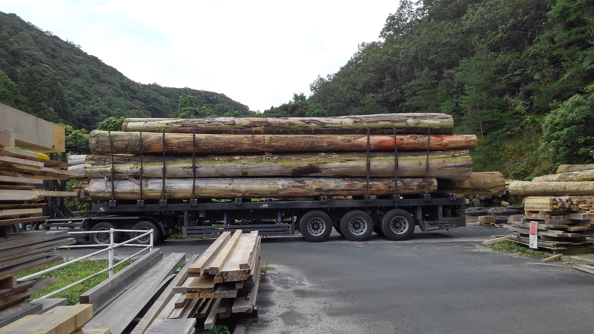 少し見にくいですが、長さ10~12m、径は40~60㎝といった中径木を主体に取り寄せました。