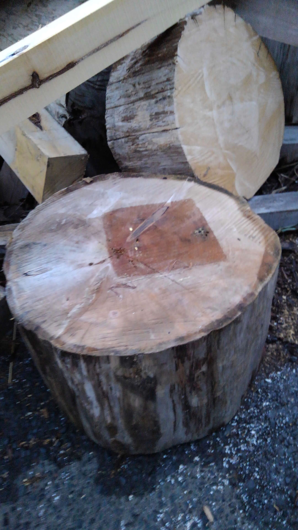 この切株、友人から『巻き割りの台にするけ、なんかちょうだい』と言われ、目ぼしいサイズ感の切株を探したときの写真です😄