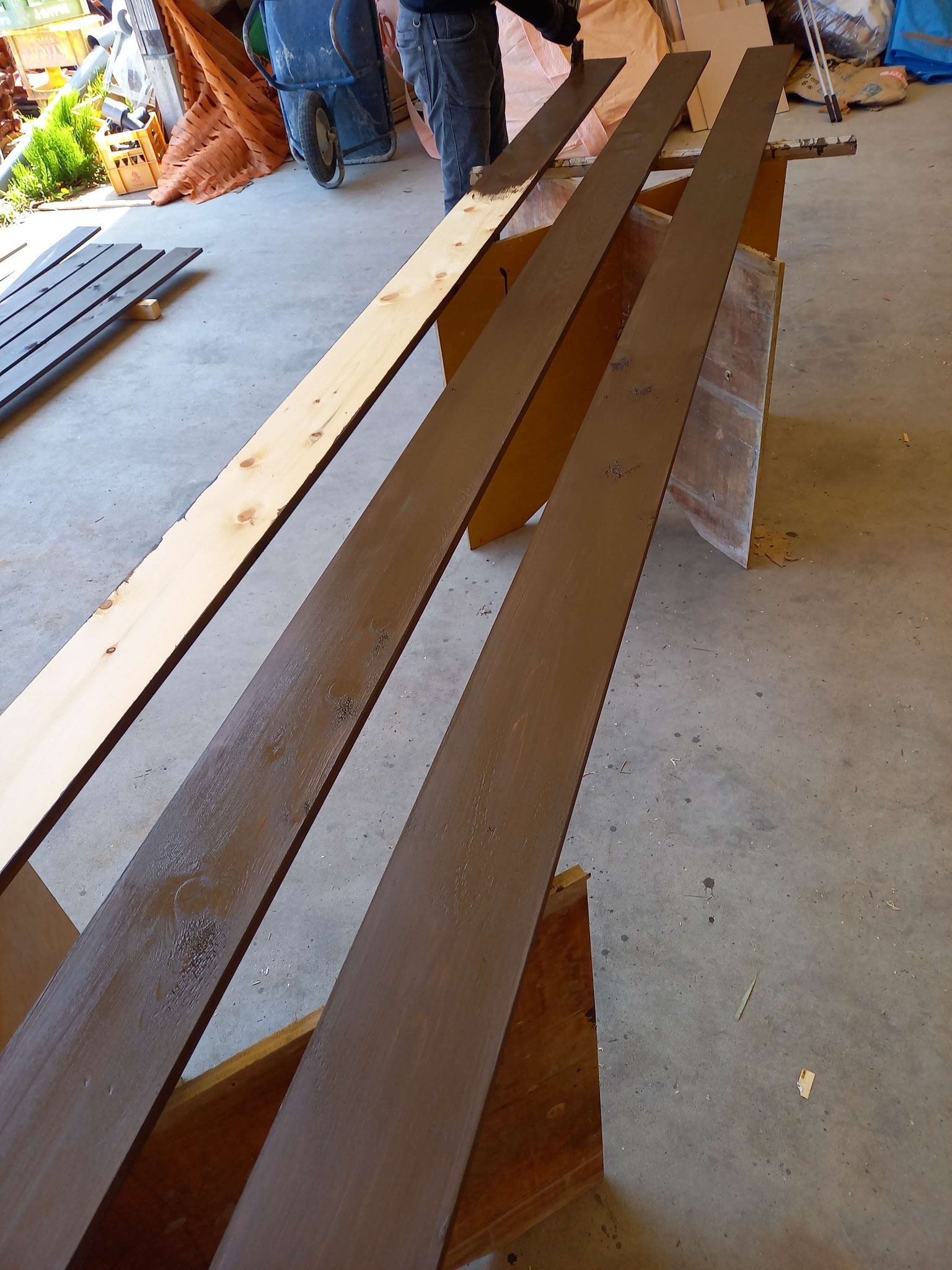 さて今月は、大工さんがデッキ用に加工・塗装していたので、写真を撮らせてもらいました😄人様の仕事は見ていて楽しいですね😄