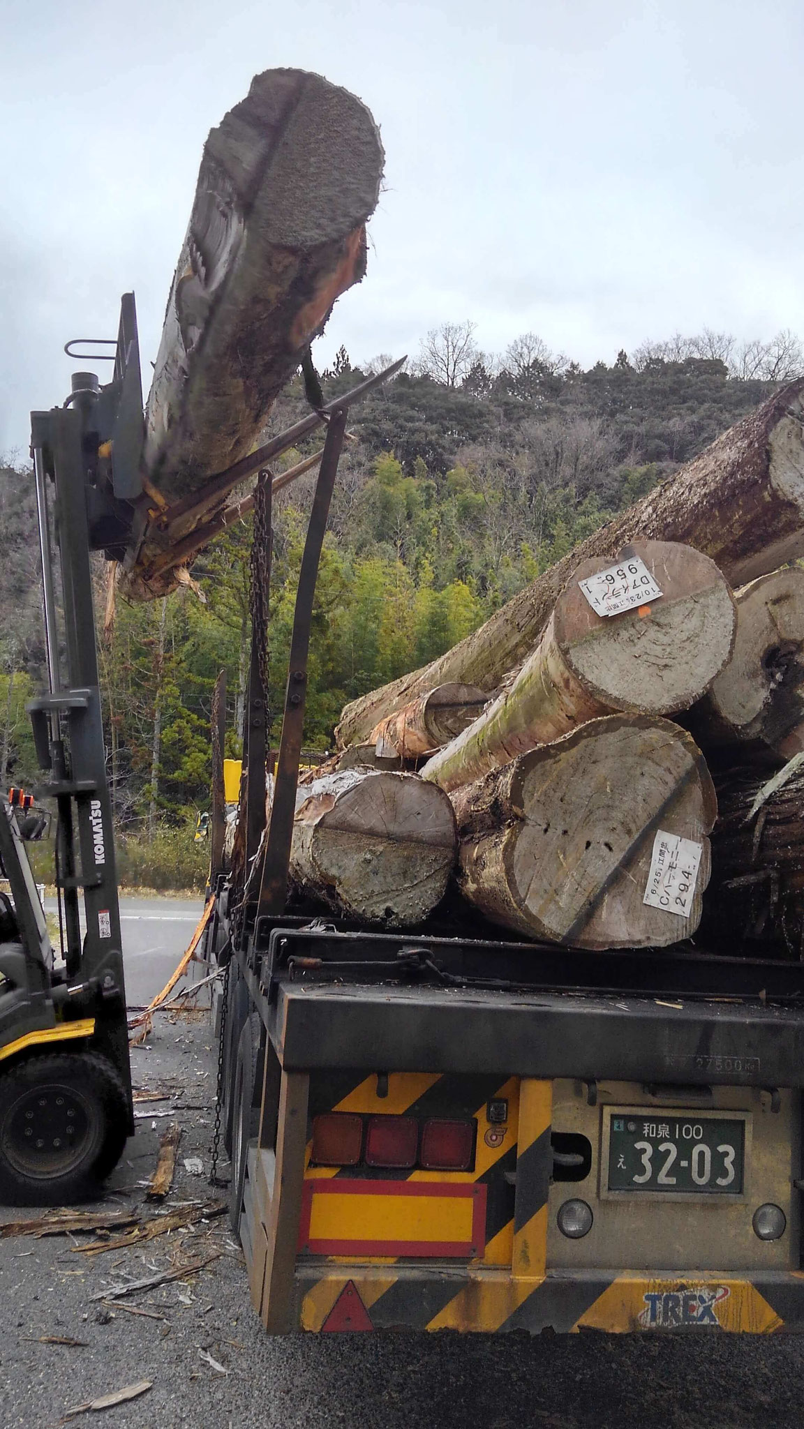 12月は忙しく出張が多かったので、不在時にきた原木(事後撮り)のカットです。