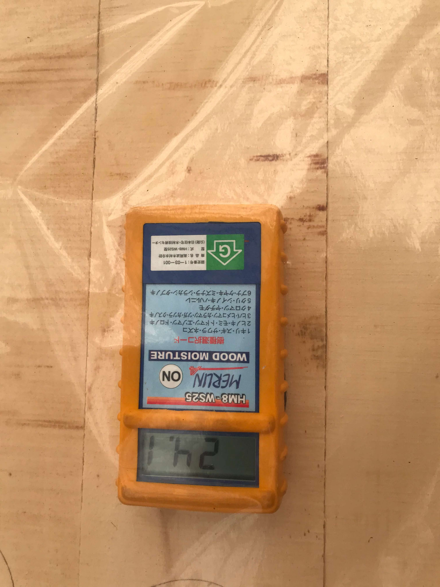 さて、今月の写真は、含水率計持参で来社してくださった方が、弊社の米ひば(生材と自然乾燥材)の含水率を計測され写真を撮られたのを頂いたものです😄