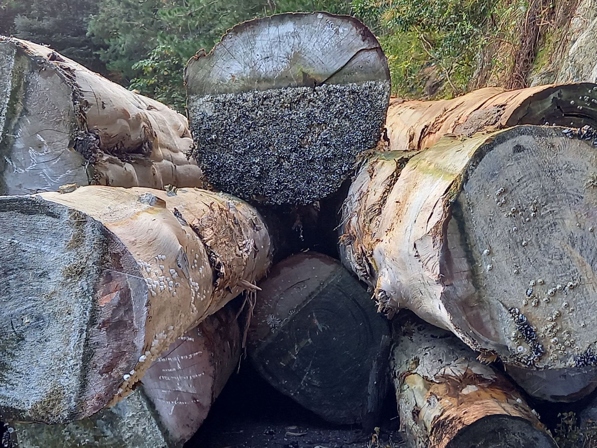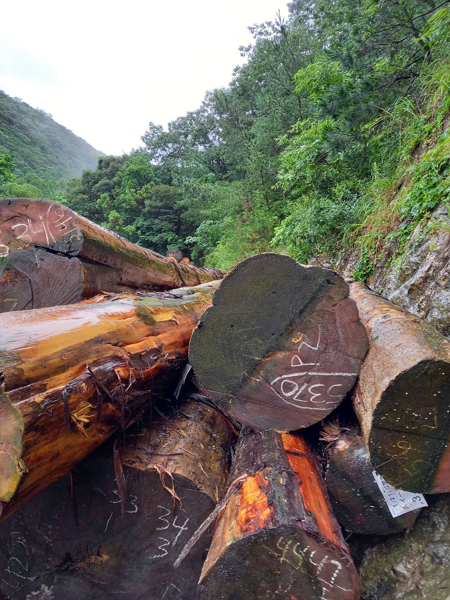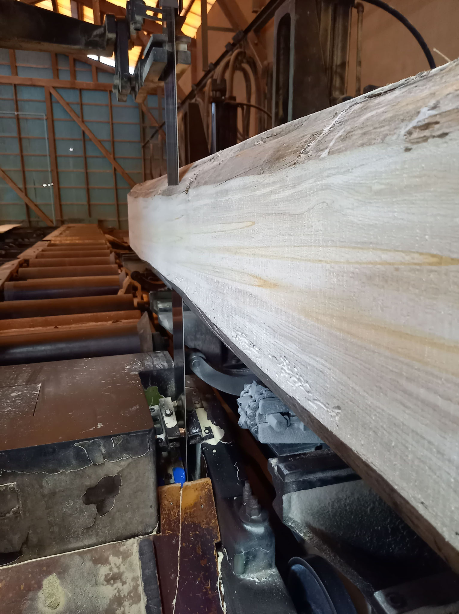 今月は原木写真ですが、原木の入荷量が年々減り、半製品が増えてきているのが現状で、規格外寸法が高嶺の花になってきつつあり悲しいものですね🤮