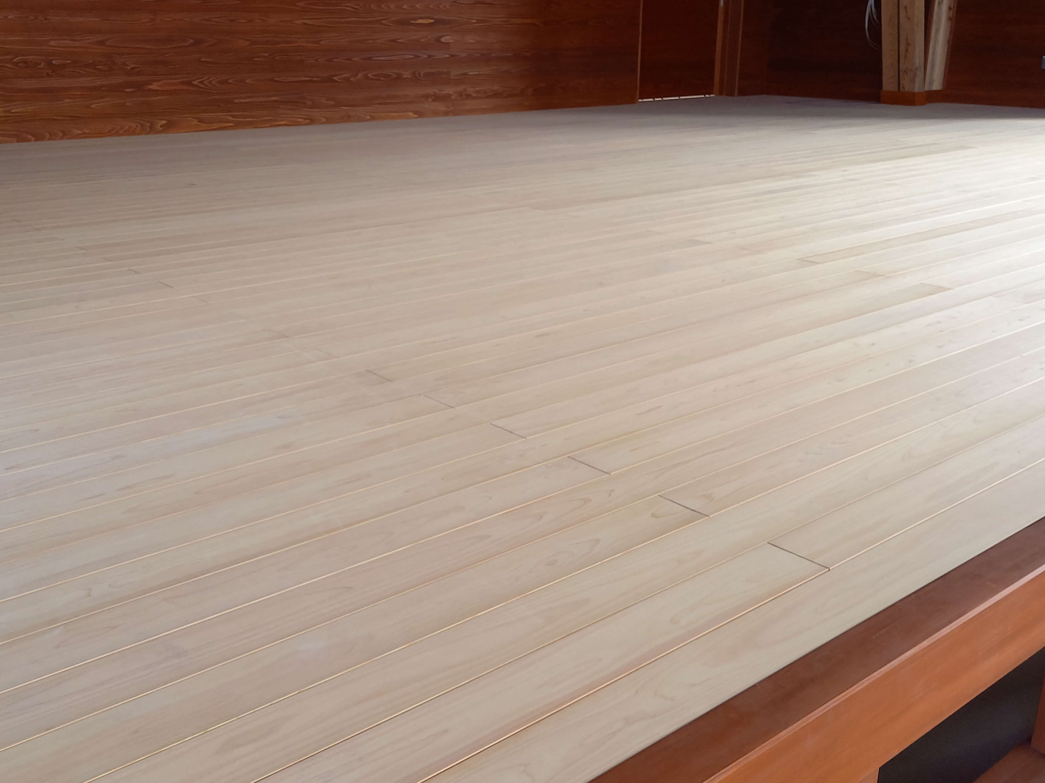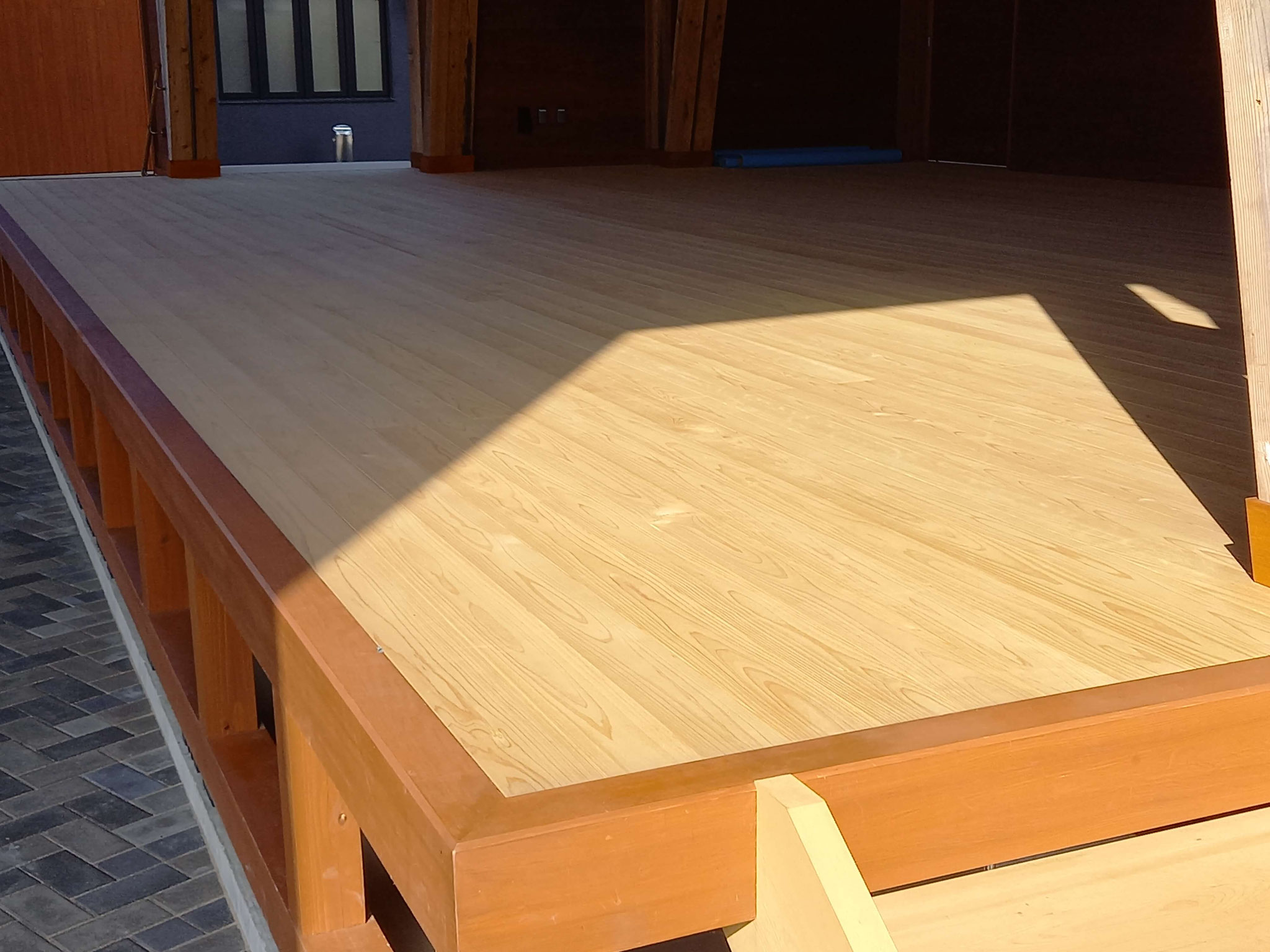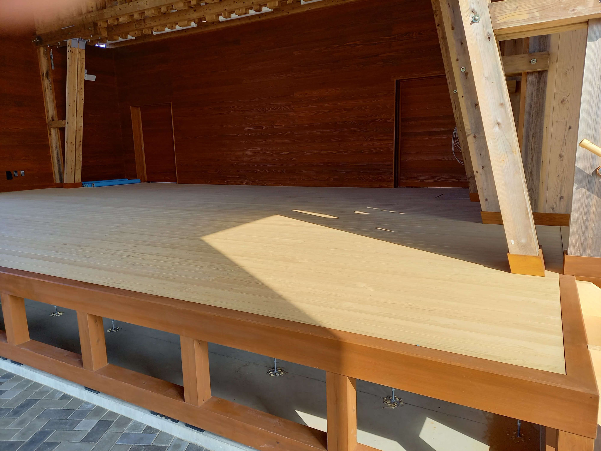 さて、今月の写真は、近所の神社の神楽殿床張り替えの為の床板です。