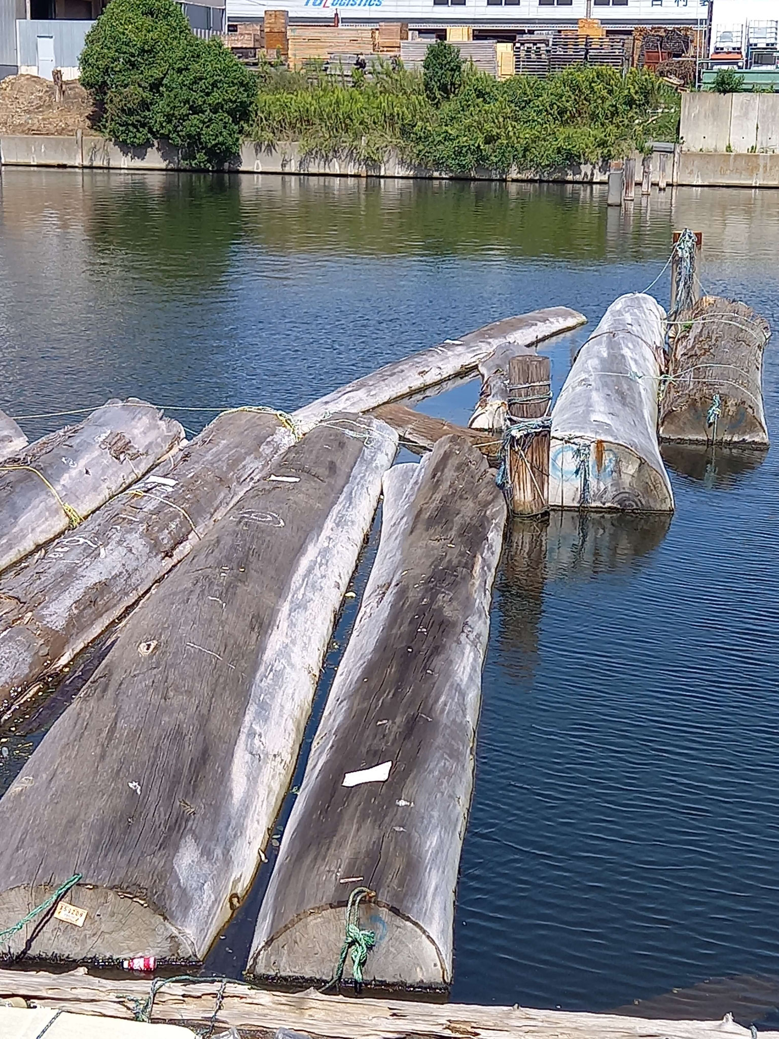さて今月の写真ですが、先月名古屋に原木を見に行ったときの筏の写真になります。