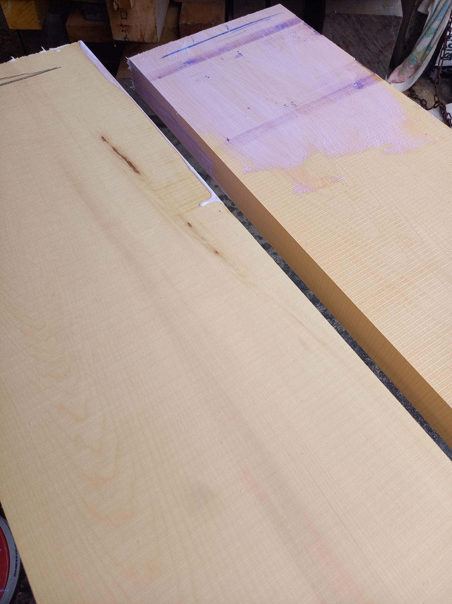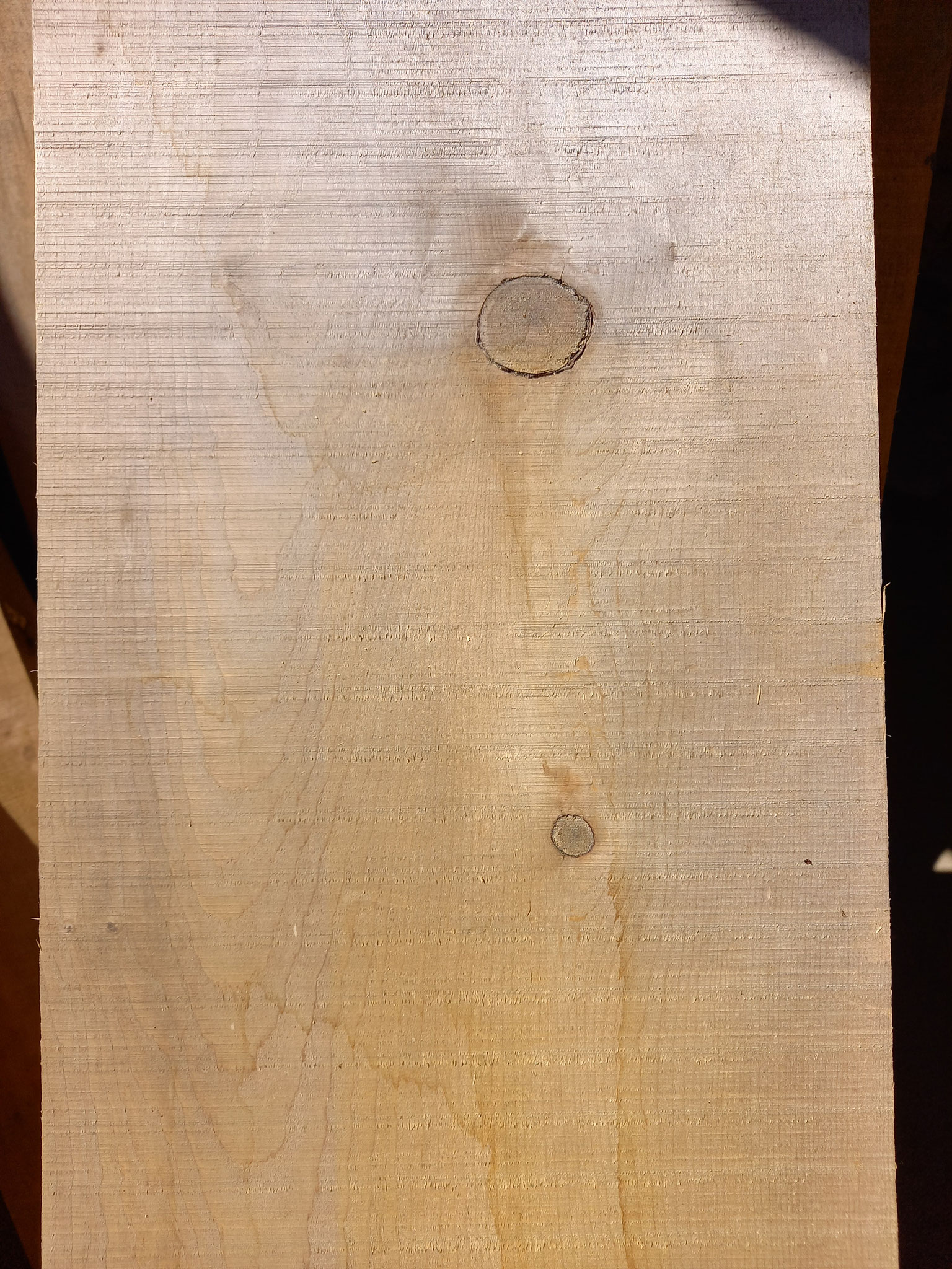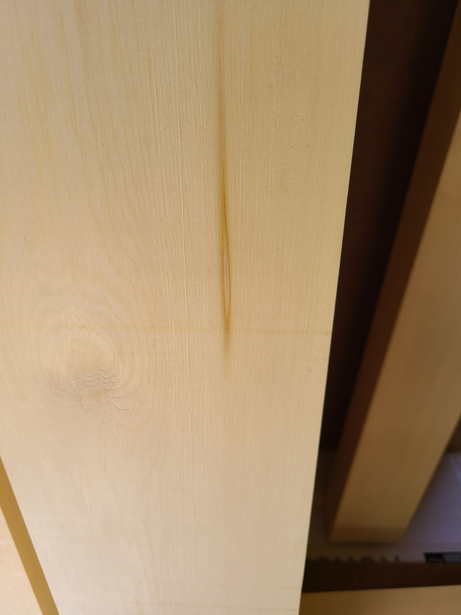 ベイヒバは綺麗なので何もないと思われる方がいらっしゃいますが、そのようなことはなく、赤・青・紫色や茶色の筋、カスリやヤニ壺などもあります👆