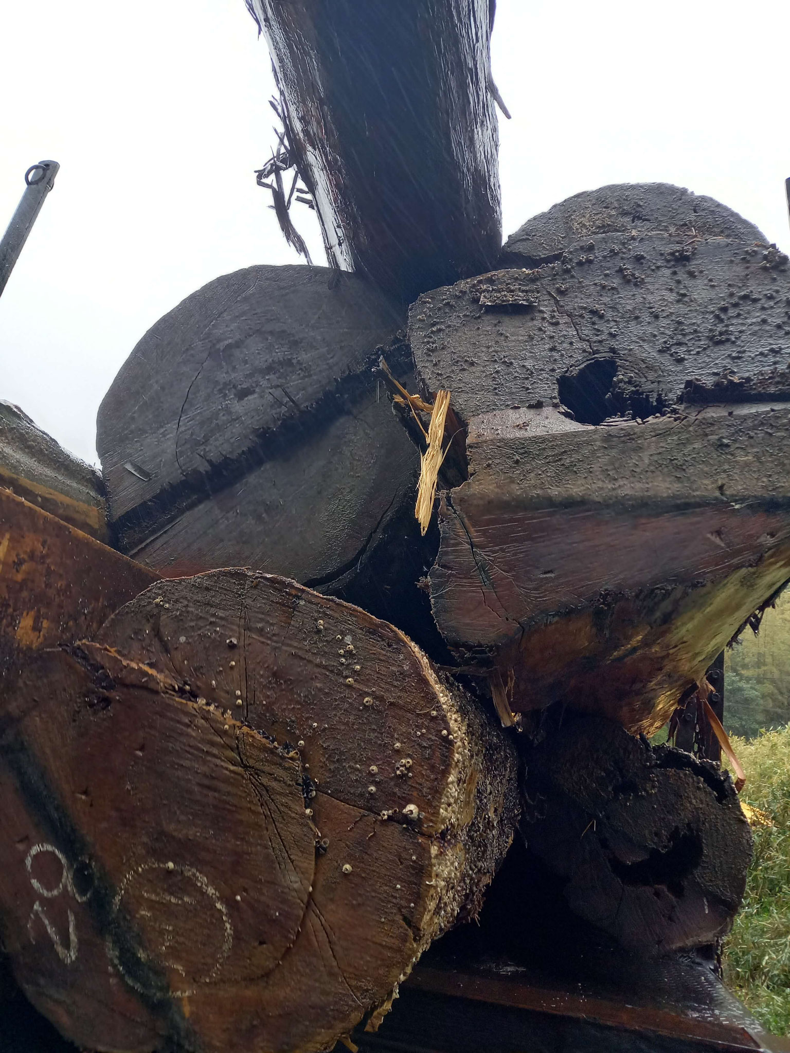 今月の写真ですが、芯だけが腐っているベイヒバにとって最高の丸太のお手本のような木です😊