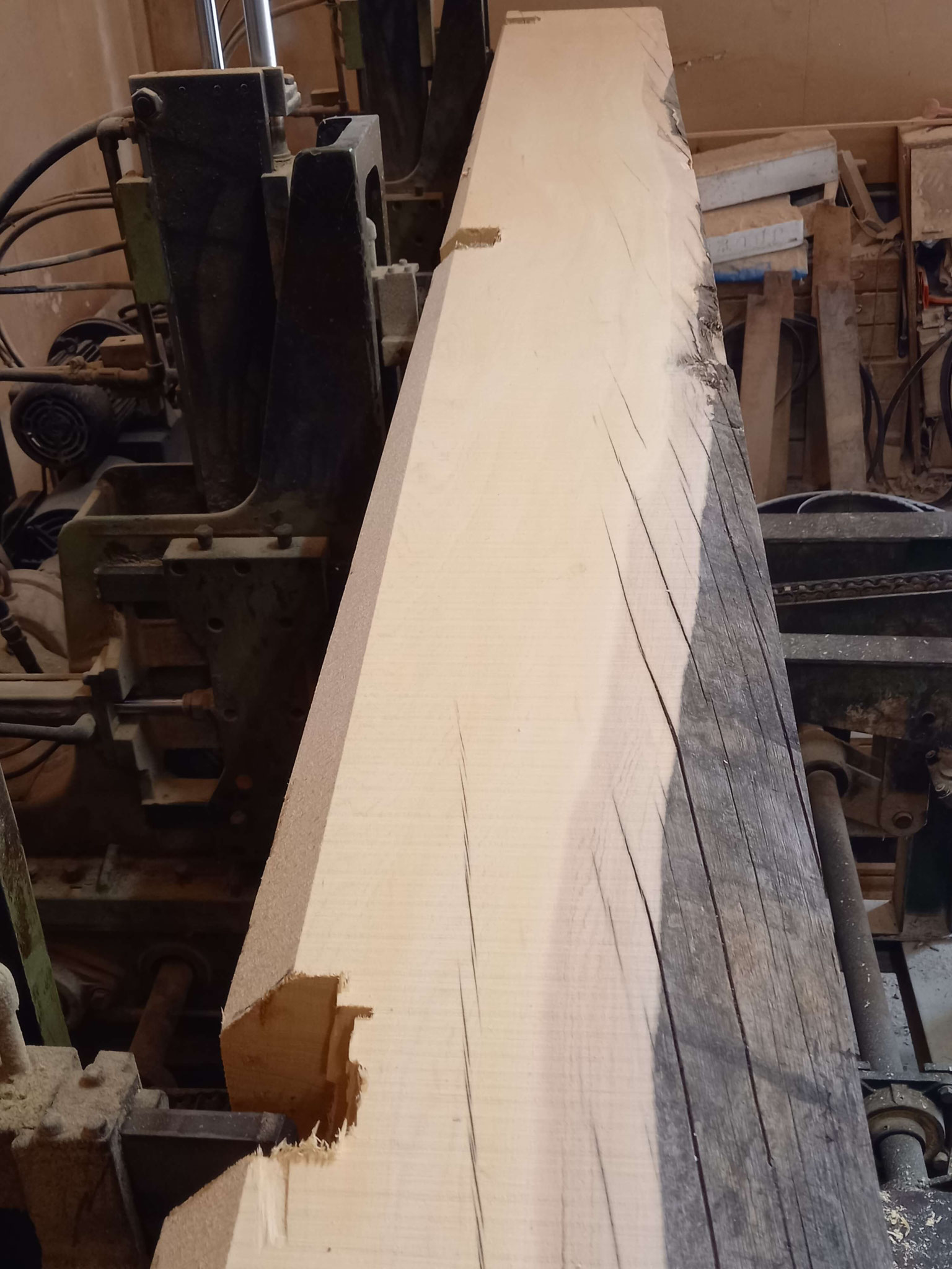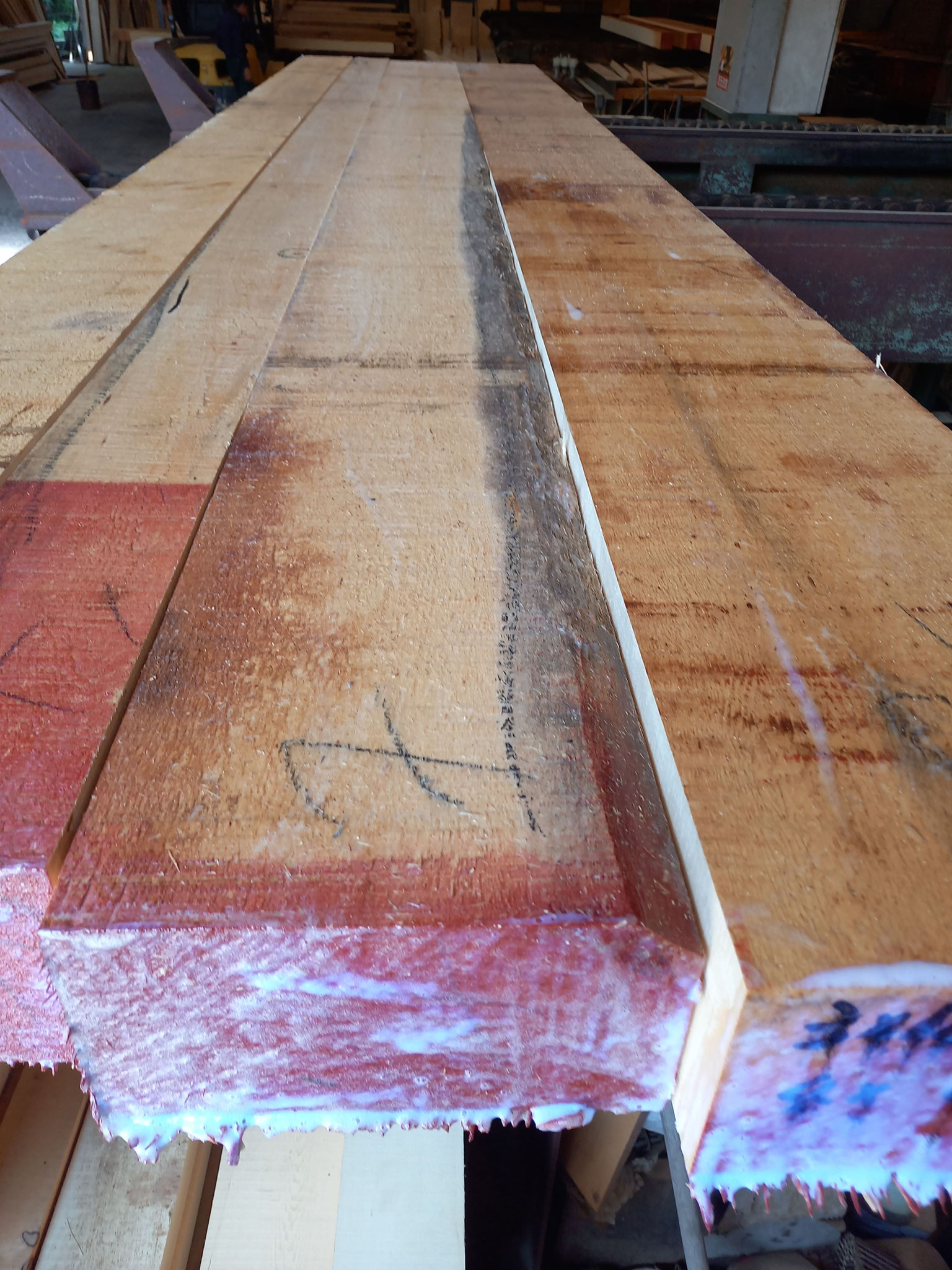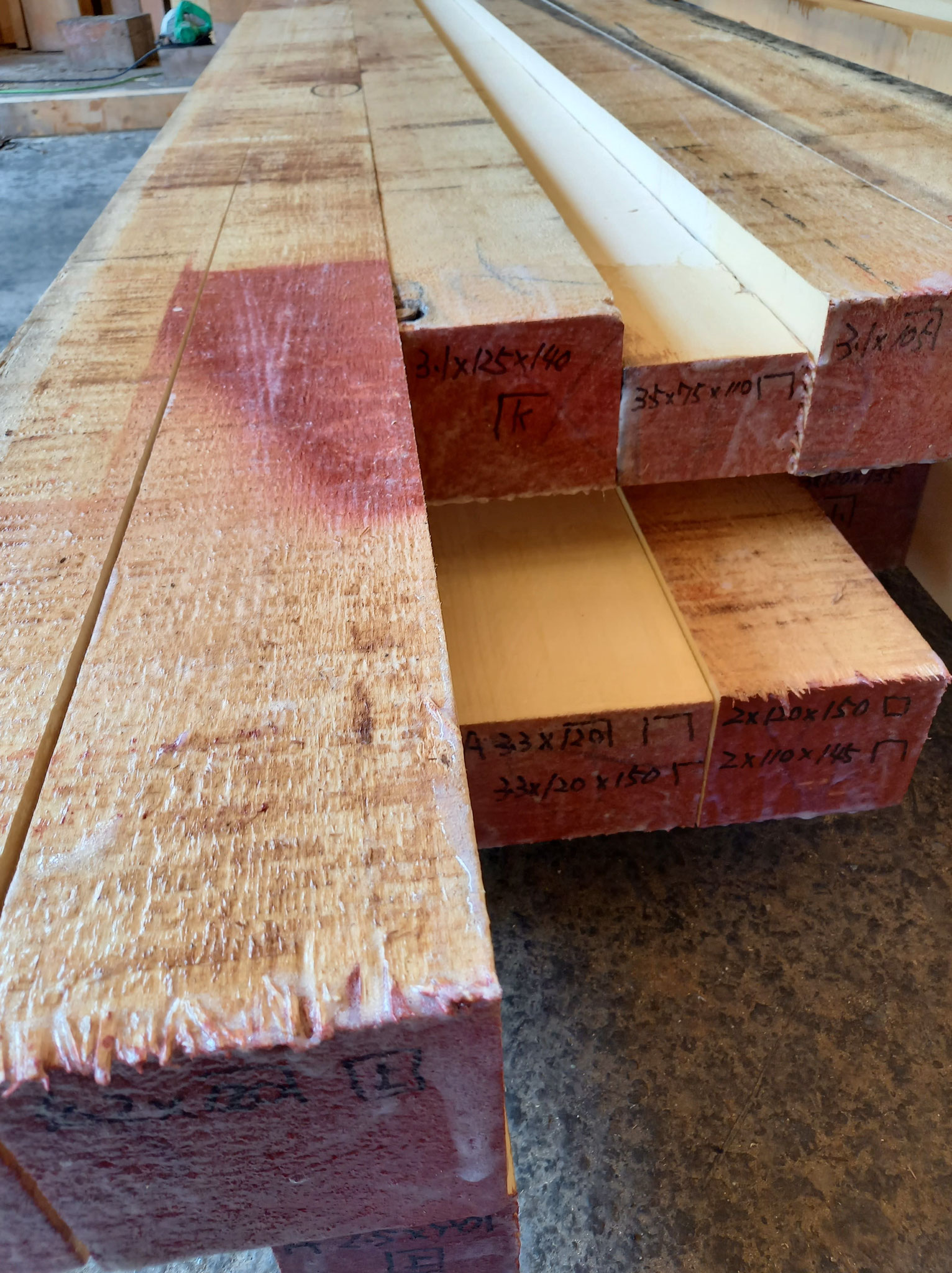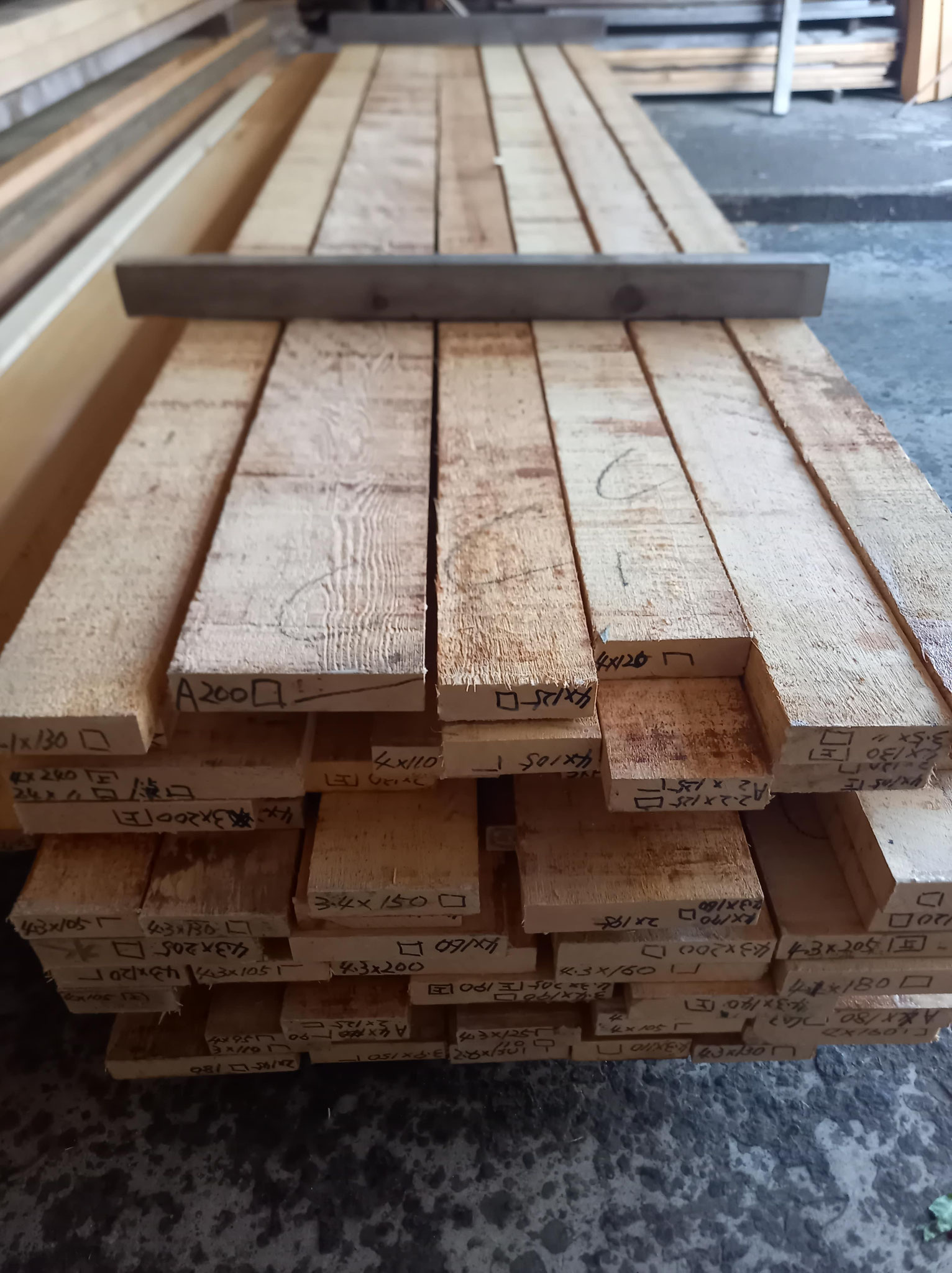 原木はもの凄く高いので、コストを抑える為に半製品も併用しています、当然、原木でしか取れないようなサイズは高騰しています😅