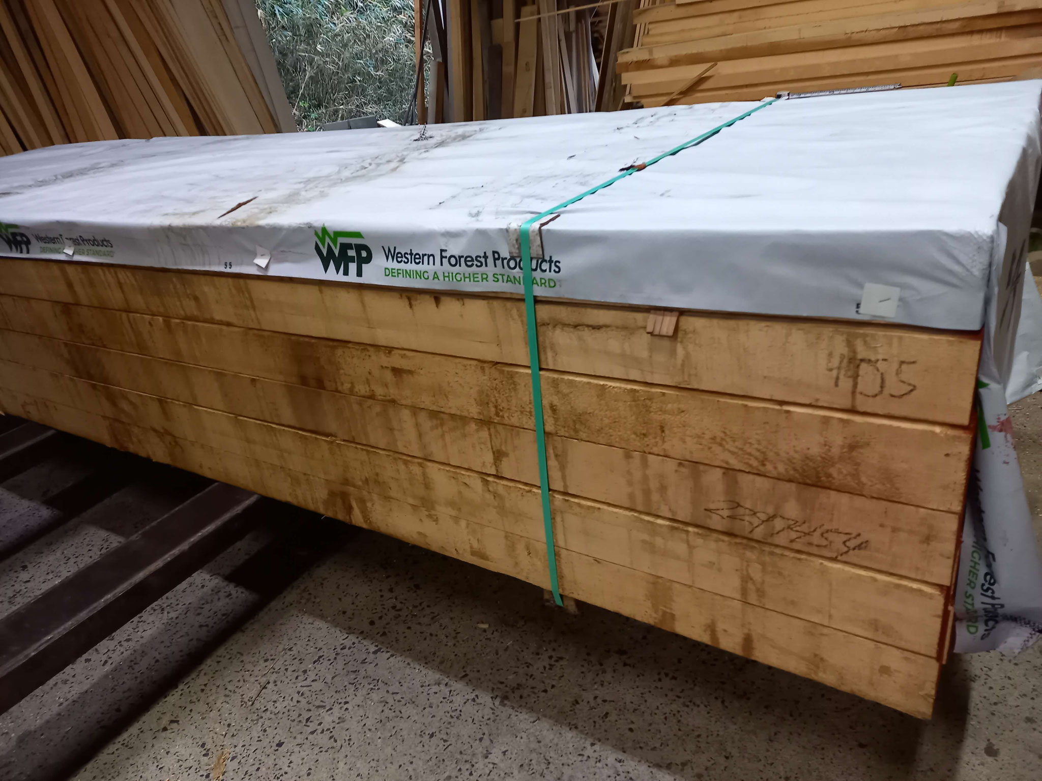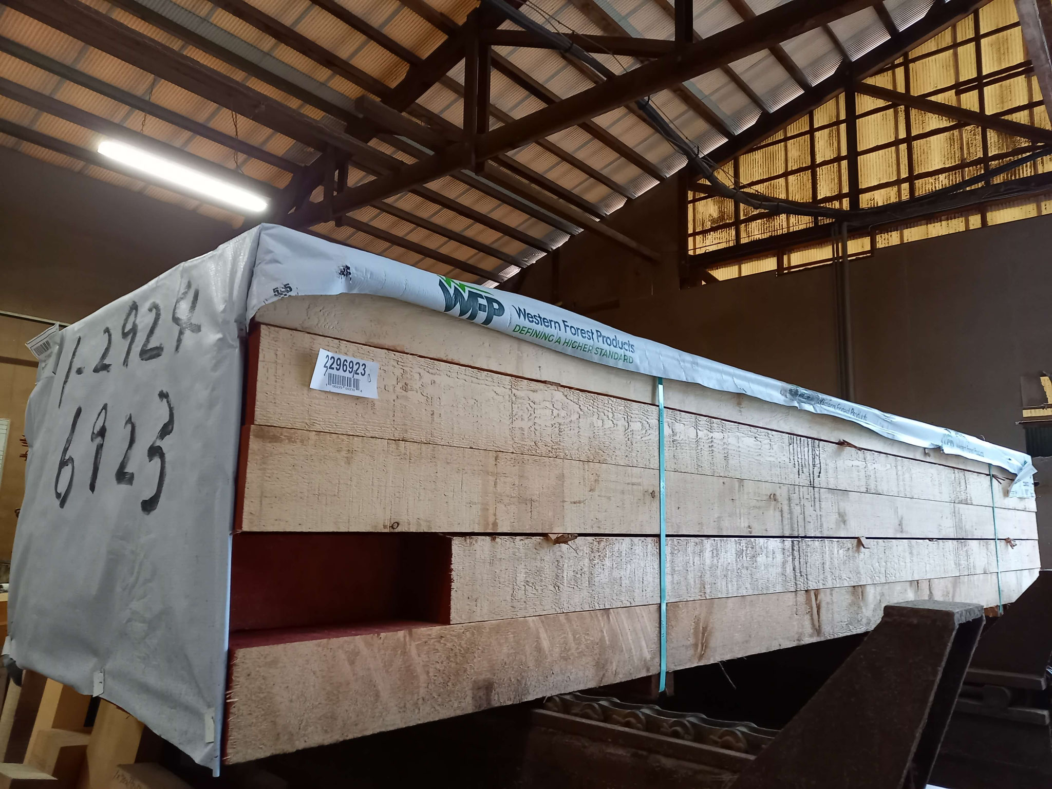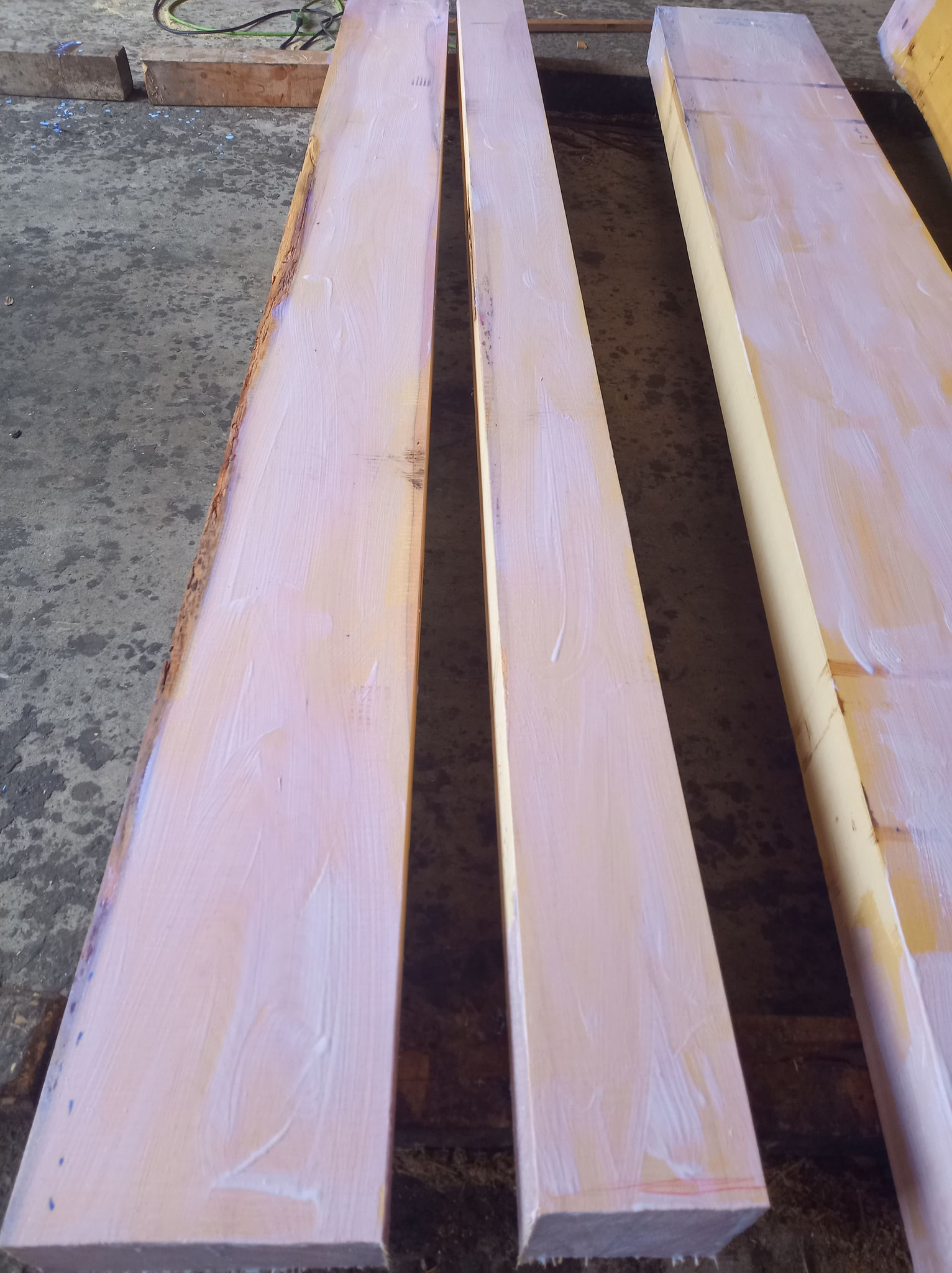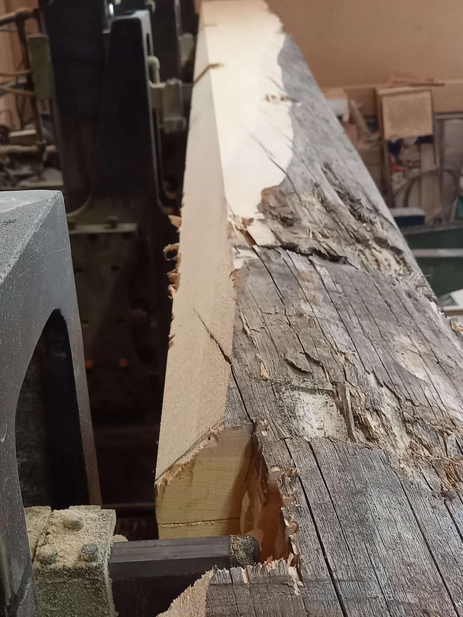 原木はもの凄く高いので、コストを抑える為に半製品も併用しています、当然、原木でしか取れないようなサイズは高騰しています😅