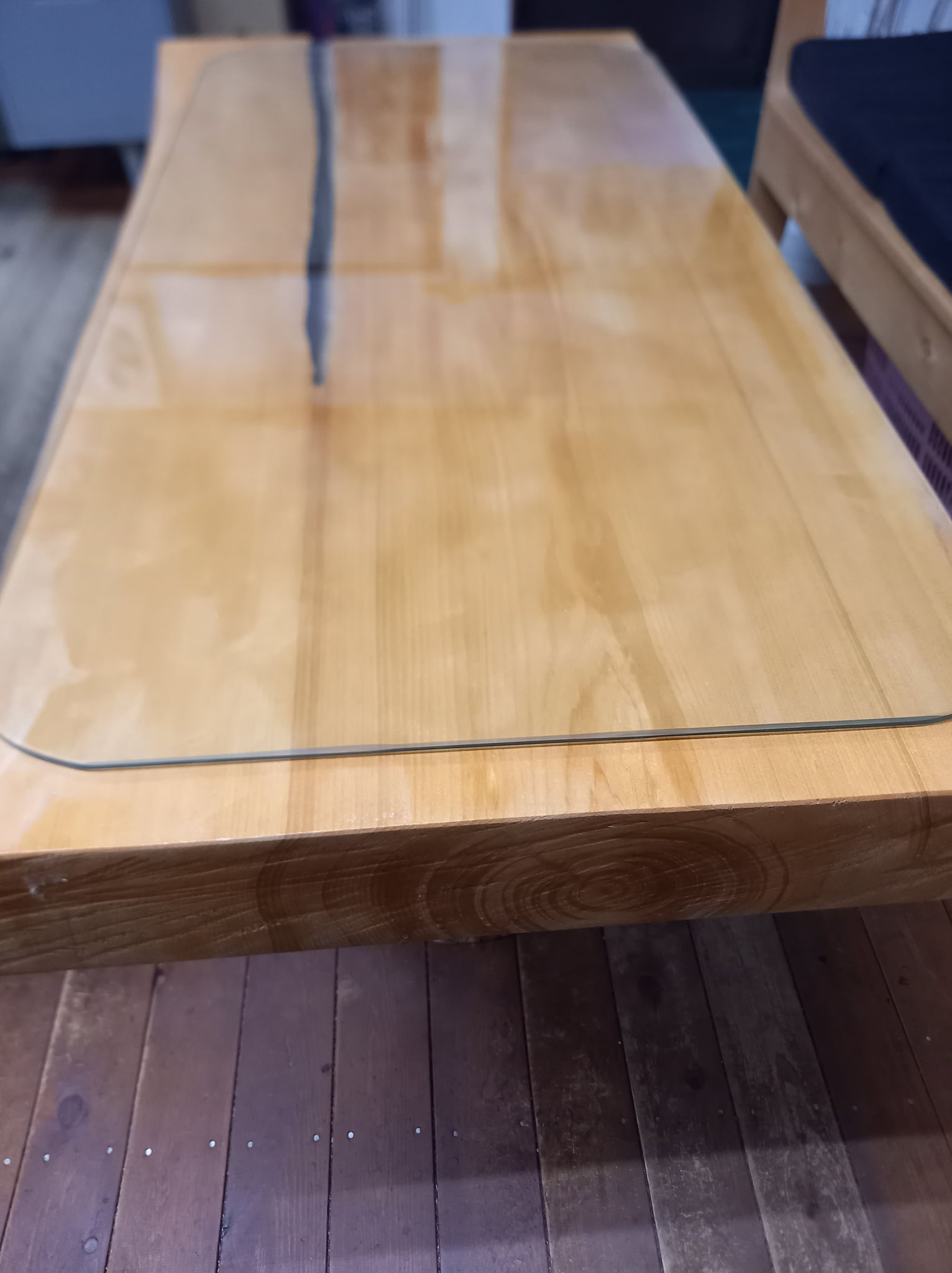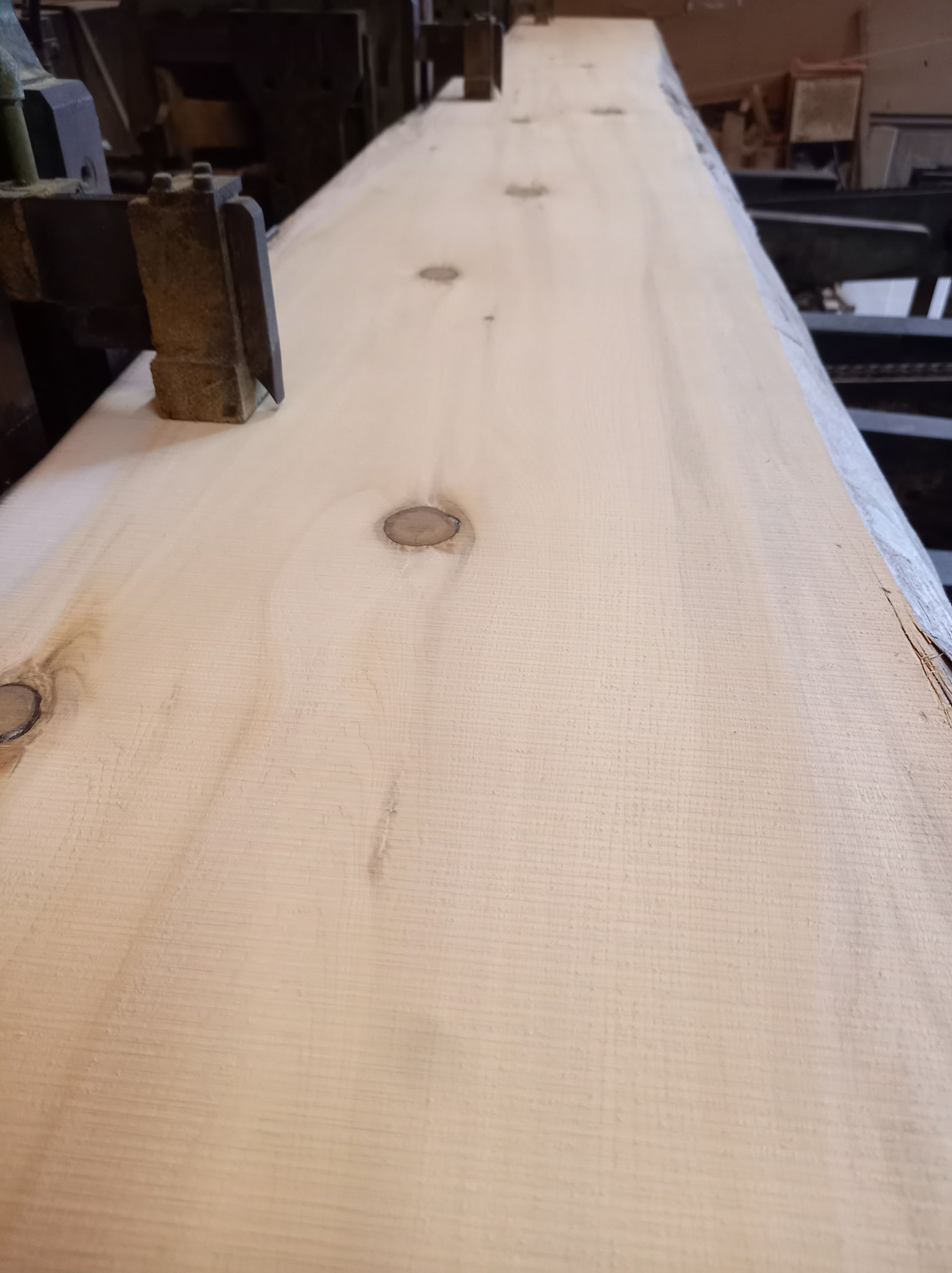 さて、今月の写真ですが、ベイヒバの木味や節、色味などをご覧いただける1枚板ではないかと思います。