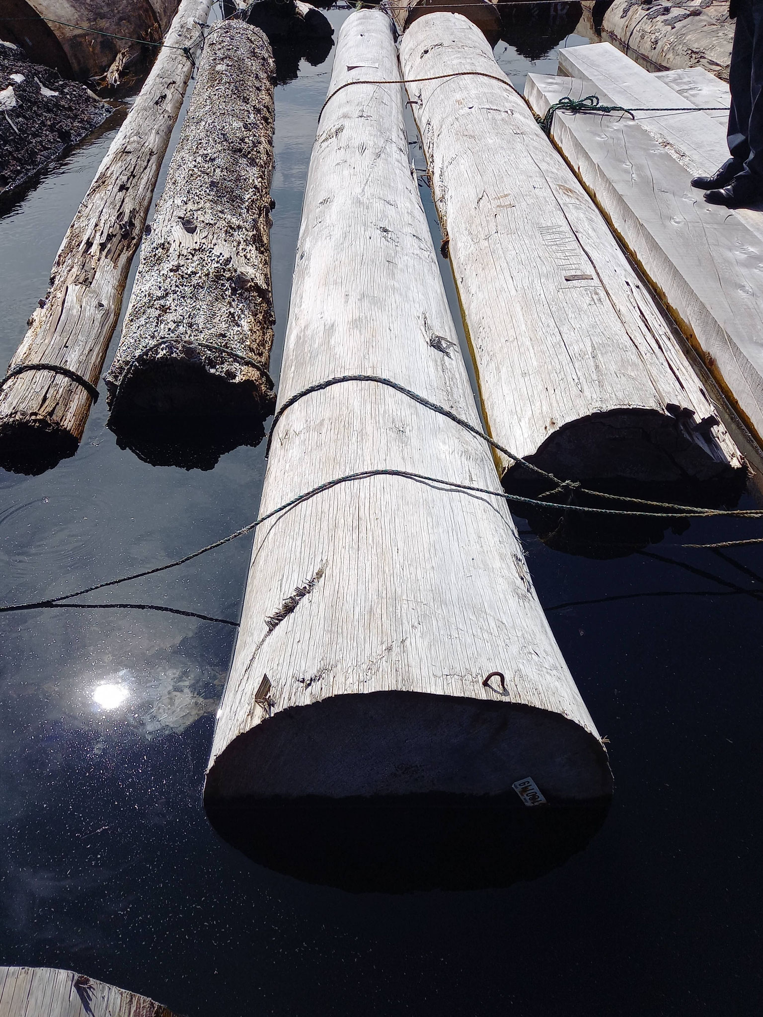 さて今月の写真は、8.4mの丸太を半分にカットして割ったものです。