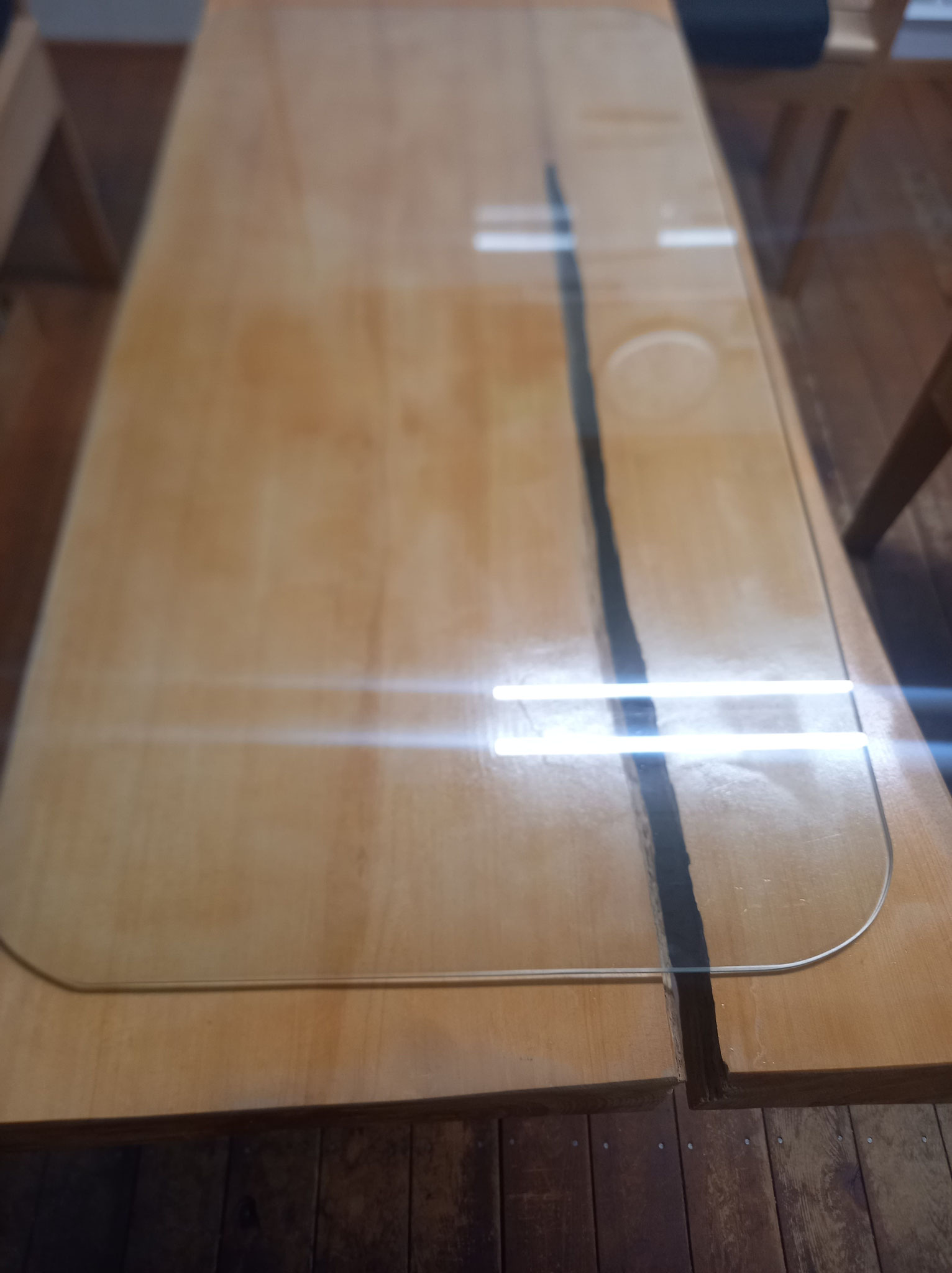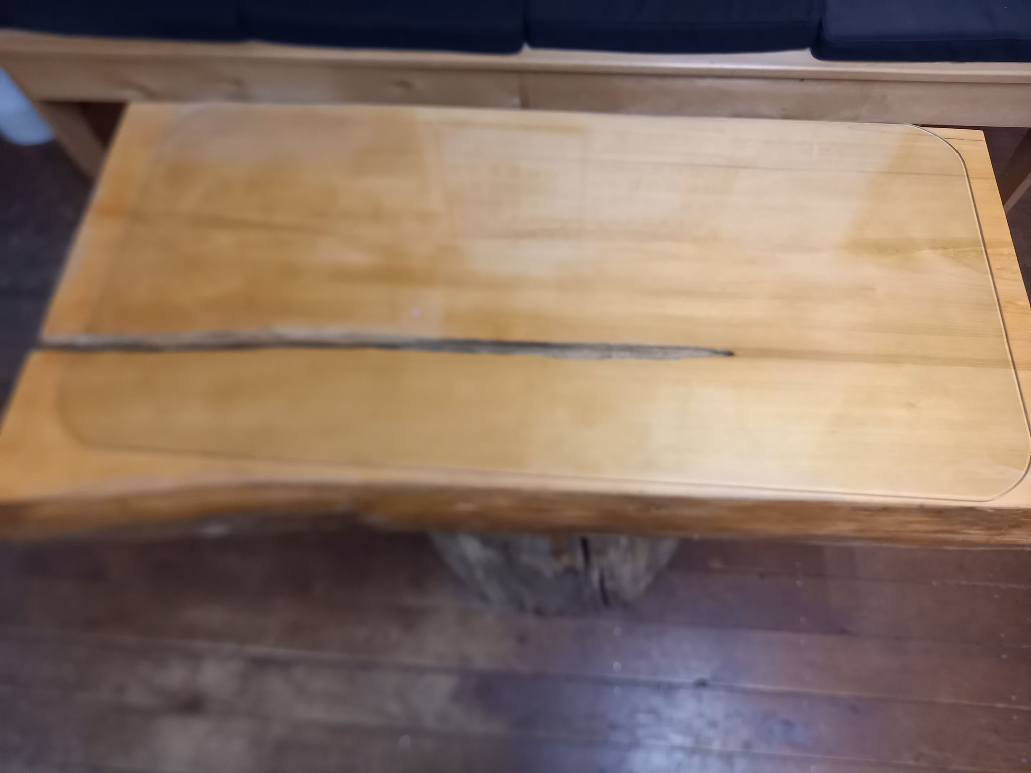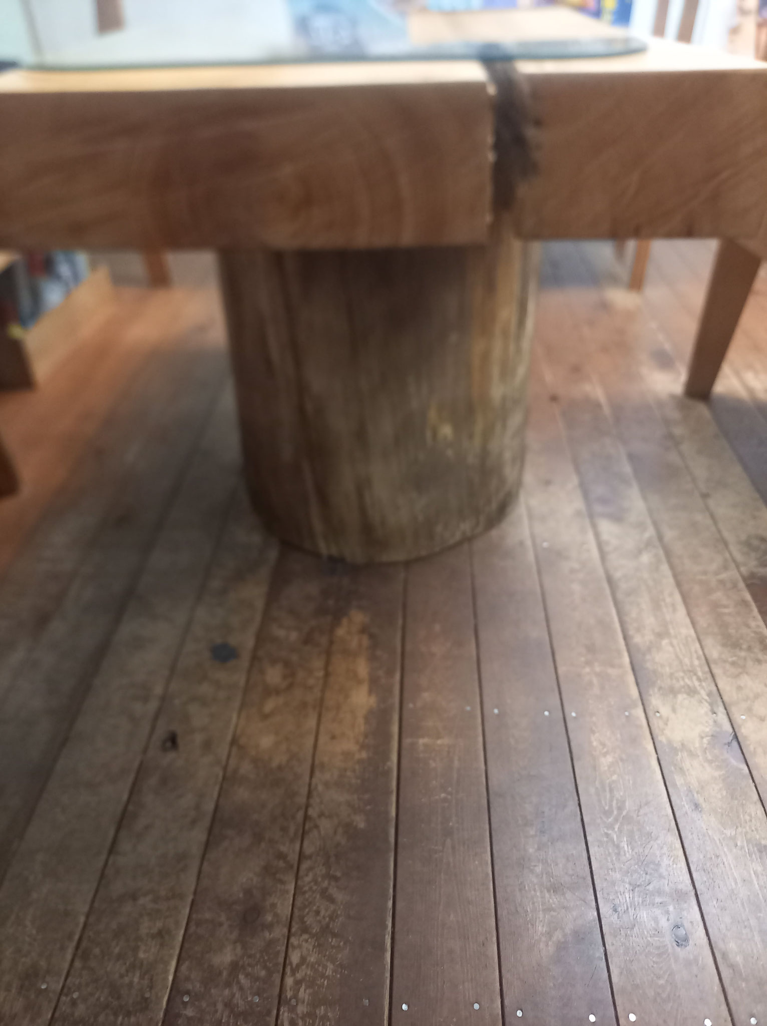 脚は切株で、ガラスサイズに合わせたベイヒバでテーブルを作りました😄