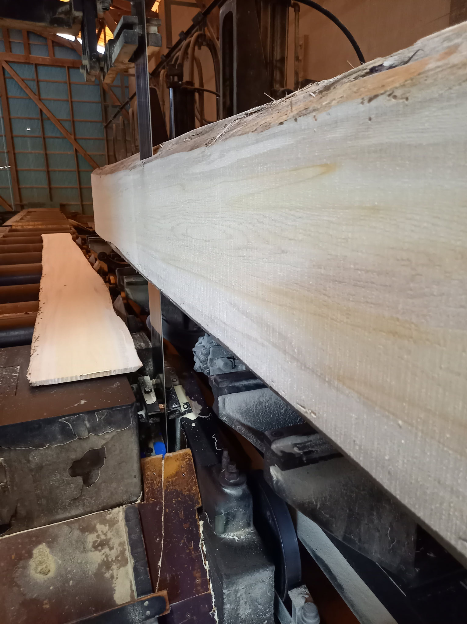 さて、今月は現地挽きですが、原木の入荷量が激減し、今後は原木でしか取れない材はかなりの高騰が見込まれます😱