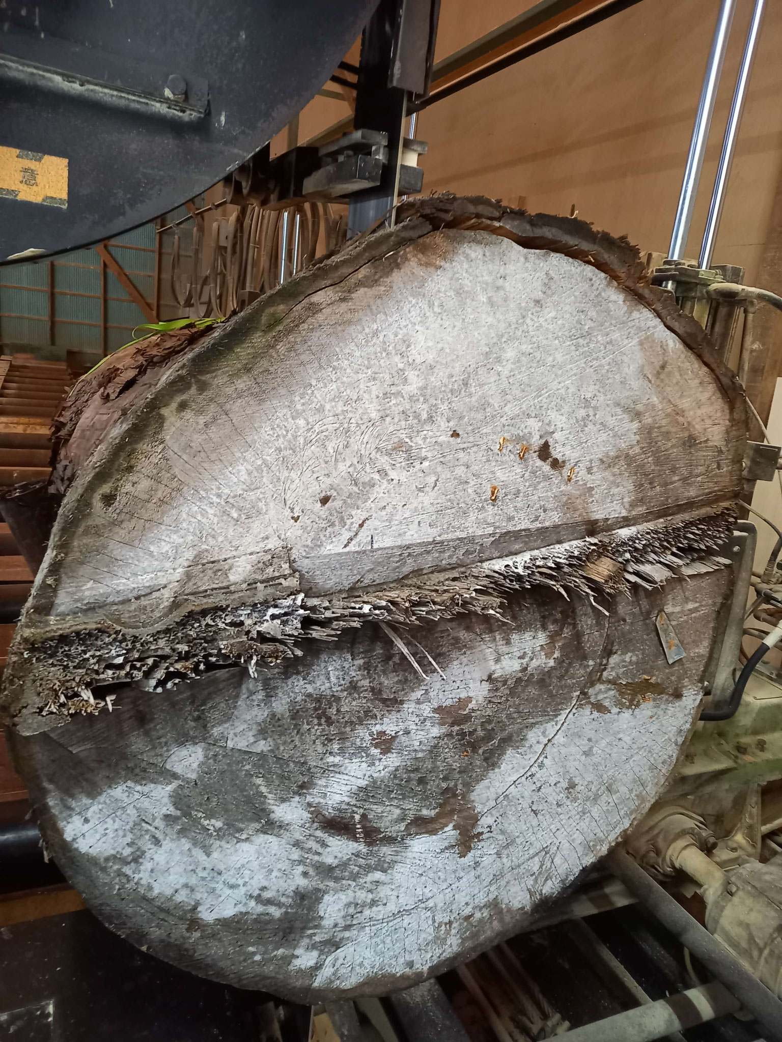 節の低い、良い元木で製材士をワクワクさせるような原木でしたね😆