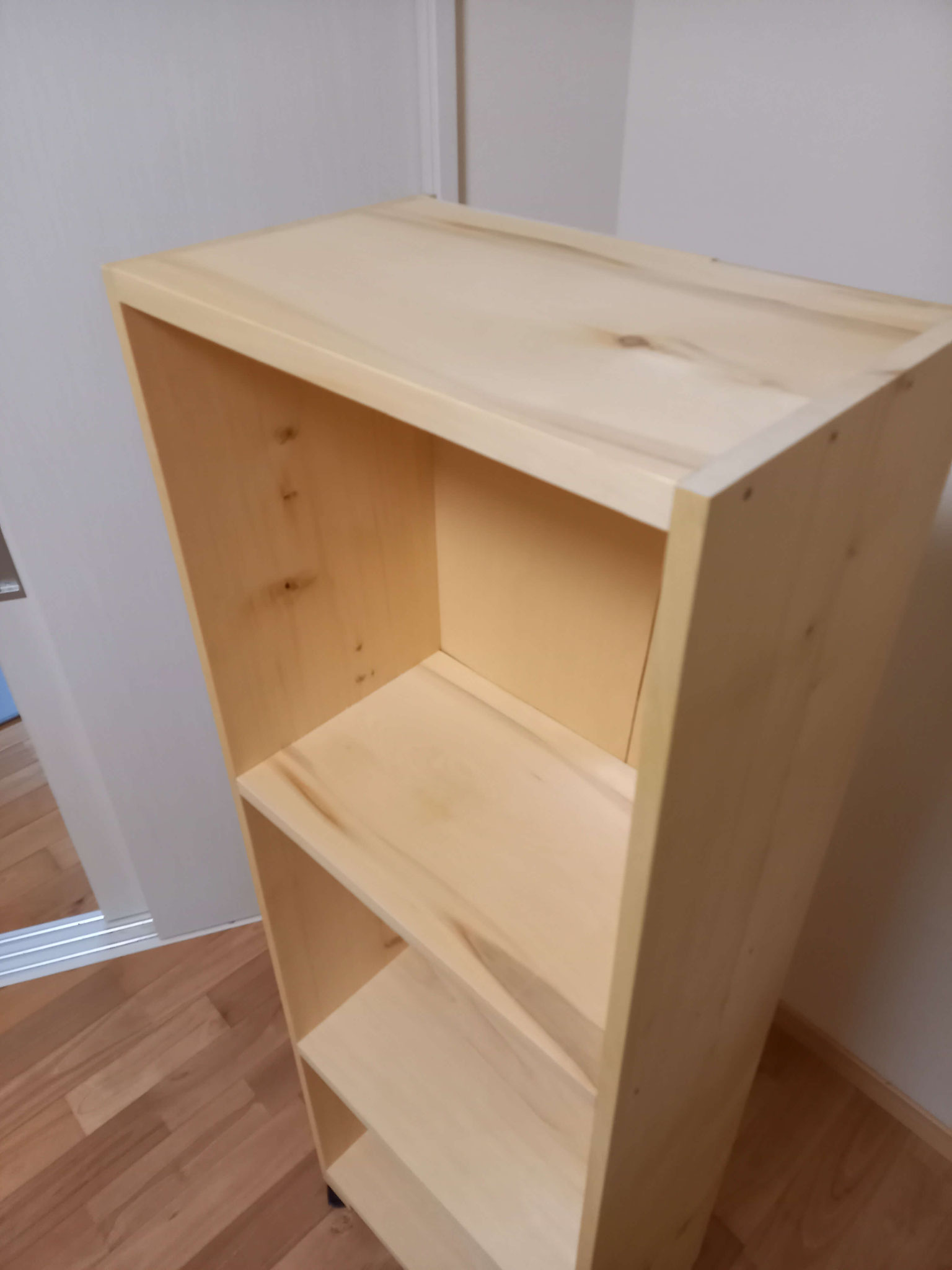 ベイヒバの節や色などがよく分かるように並材にて製作しております、素敵な色合いです😄